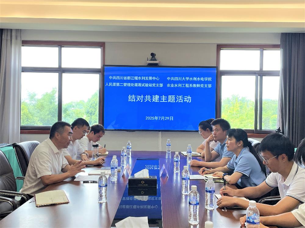 为深入贯彻习近平新时代治水方针,促进水利科研交流发展,近日,四川大学水利水电学院农业水利工程系教师党支部与四川省都江堰水利发展中心人民渠第二管理处灌溉试验站党支部在试验站开展支部开展共建活动。双方党员同志及科研人员通过“实地观摩+专题研讨”形式,推动党建与业务深度融合,构建产学研协同创新机制。