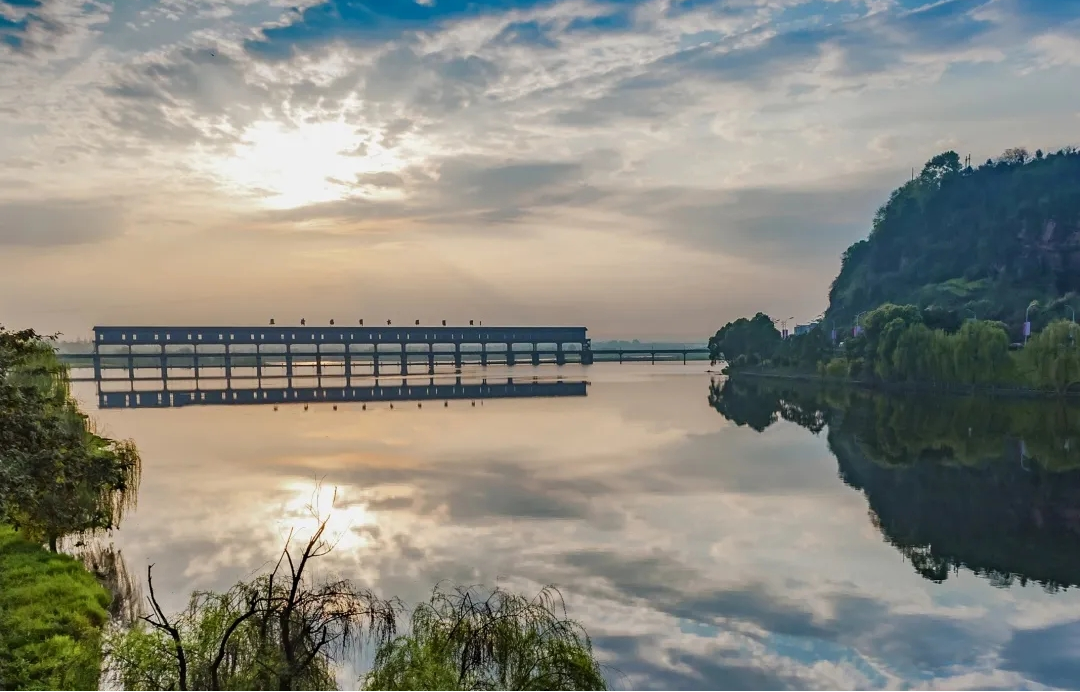 巴蜀大地的“水城”新津,五河汇聚,人杰地灵,历史悠久。在水城的南边,一山、一堰、一城、三河,就这样自然而然、“其乐融融”地交汇在天地人文之中。其中,修觉山与通济堰如两颗璀璨明珠,它们的“山水情缘”在古诗文中熠熠生辉,更与新津十二景紧密相连,承载着深厚的历史文化底蕴。