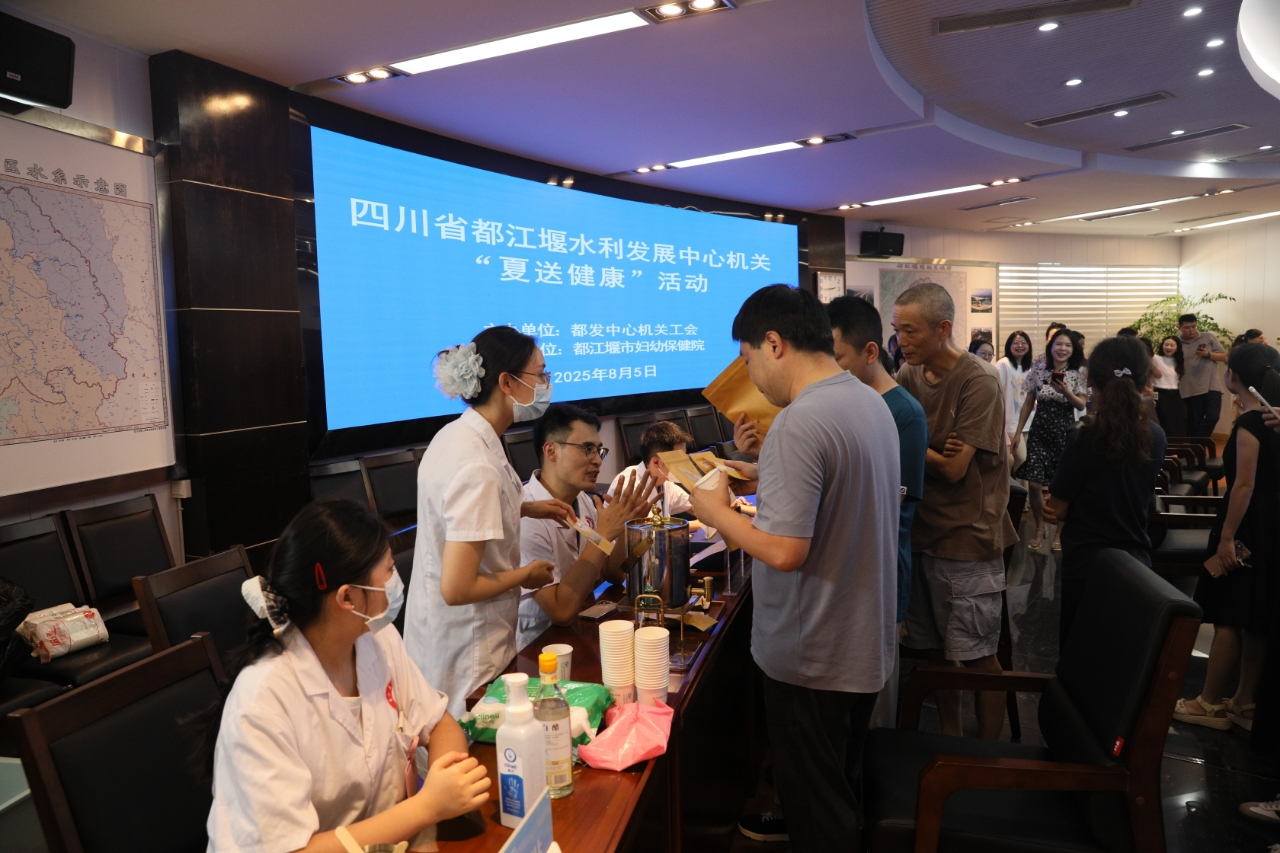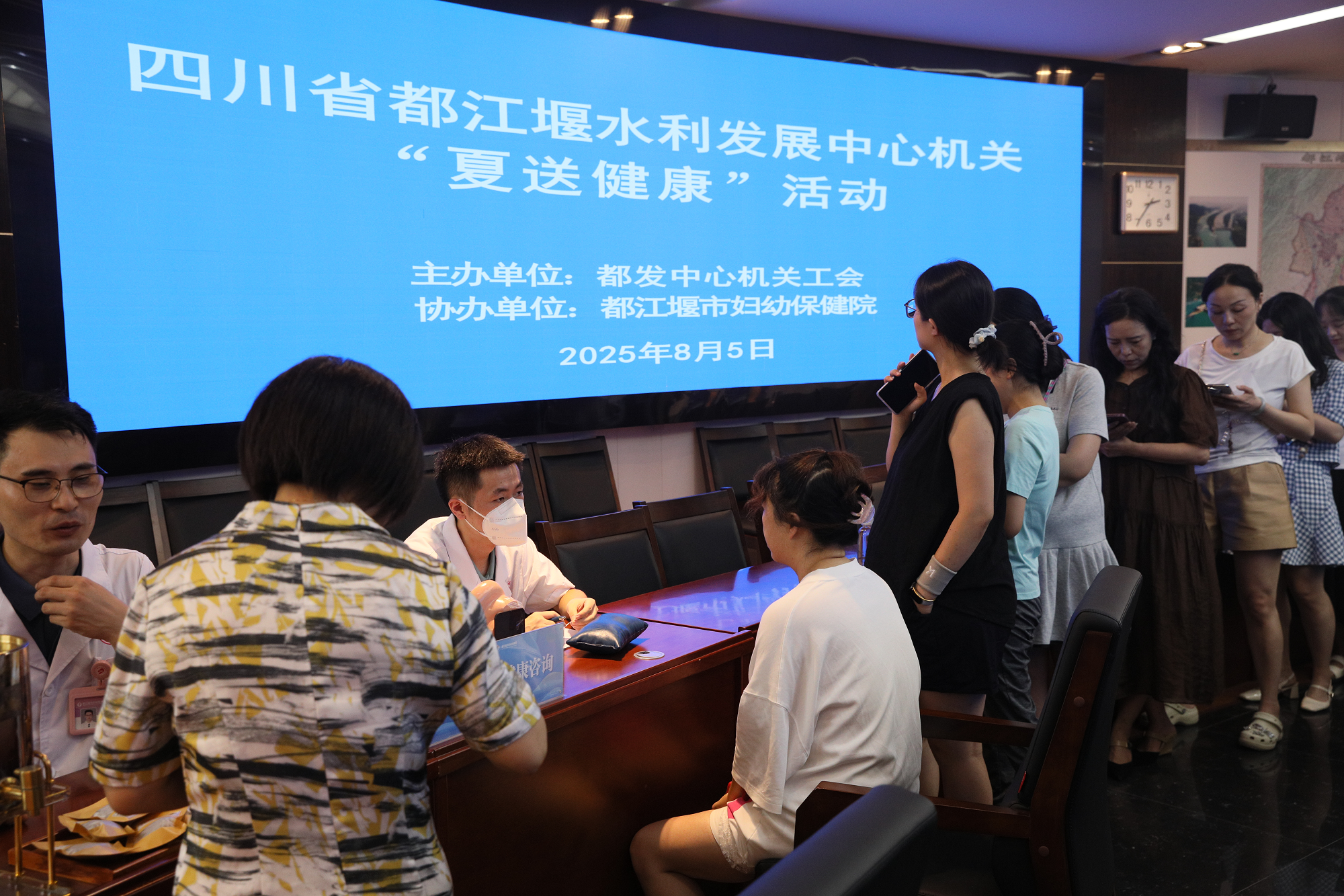近日,高温天气持续,为做好防暑降温工作,保障广大干部职工的身体健康,省都江堰水利发展中心机关工会联合都江堰市妇幼保健院,于 8月5日下午 ,在都发中心机关附四楼会议室,开展了以“夏季送健康,关爱伴清凉” 为主题的“夏送健康”活动。