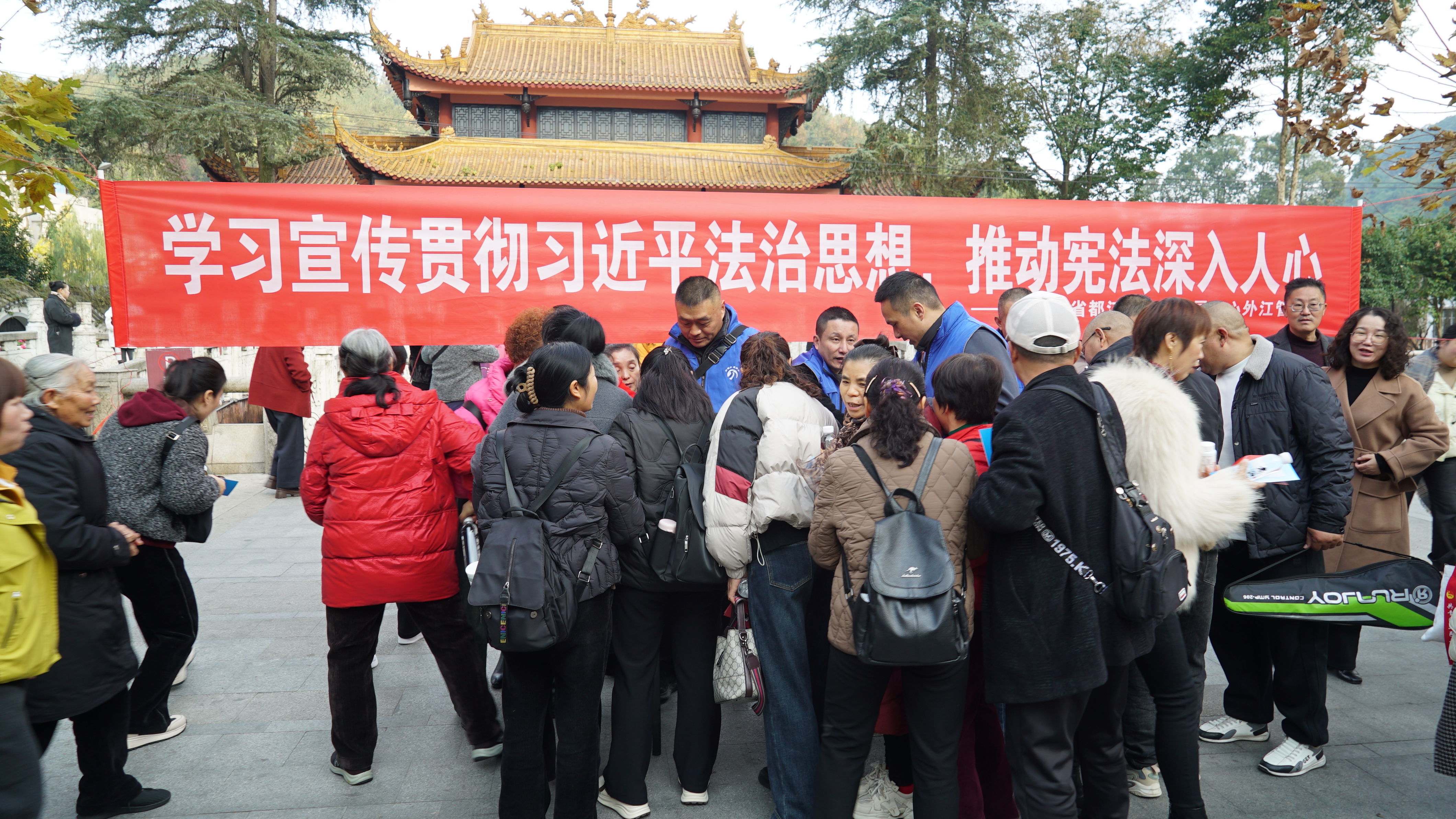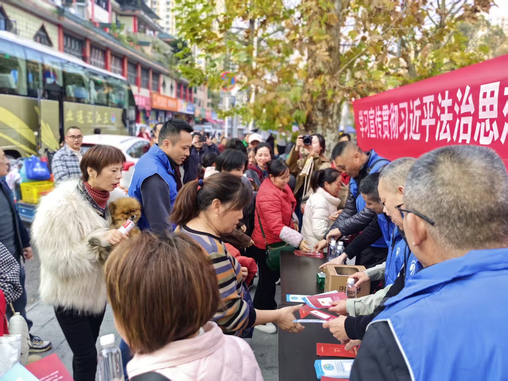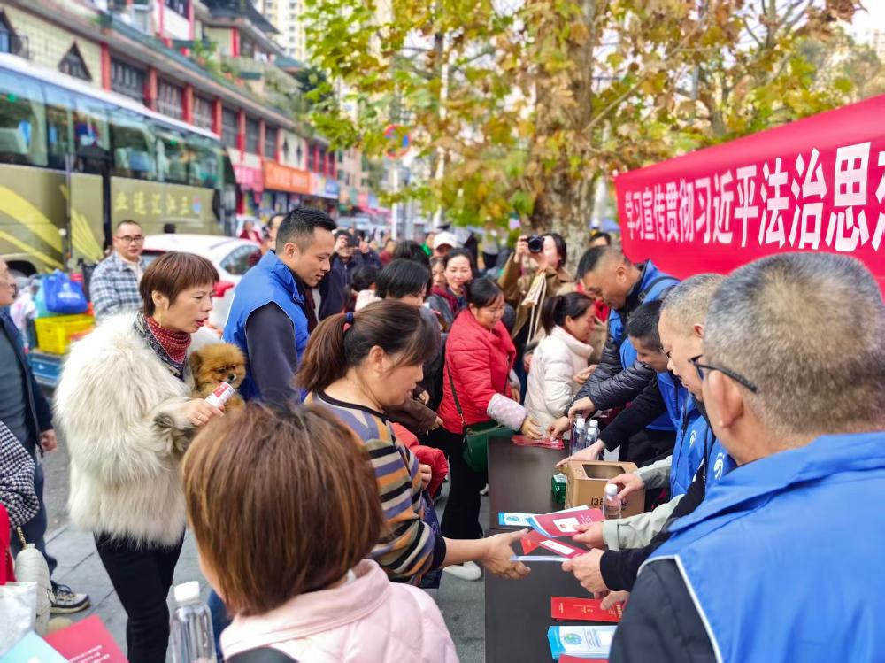 12月4日,外江管理处联合大邑县河长办、大邑晋原街道、青霞街道在大邑城区静惠山公园开展以“学习宣传贯彻习近平法治思想 推动宪法深入人心”为主题的宣传活动,向灌区群众宣传《中华人民共和国宪法》《中华人民共和国法治宣传教育法》《节约用水条例》,发放宣传资料及宣传纪念品300多份,让法治理念根植于内心。