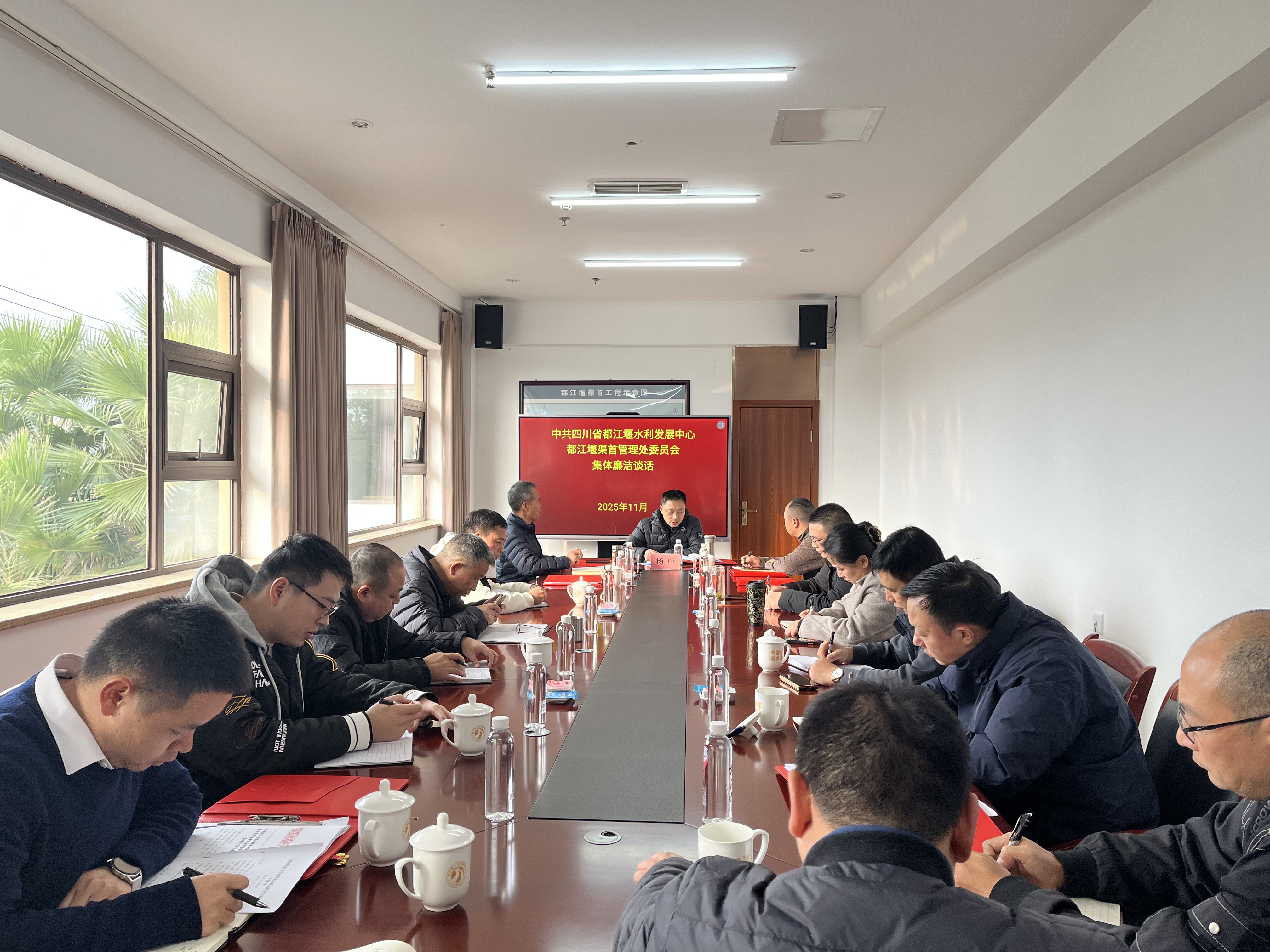 11月25日,都江堰渠首管理处党委召开工程建设领域集体廉洁谈话会,深入落实中心主要领导指示精神,进一步筑牢工程建设领域廉政防线,层层压实廉洁自律责任。党委书记、处长杨桓主持会议并讲话。