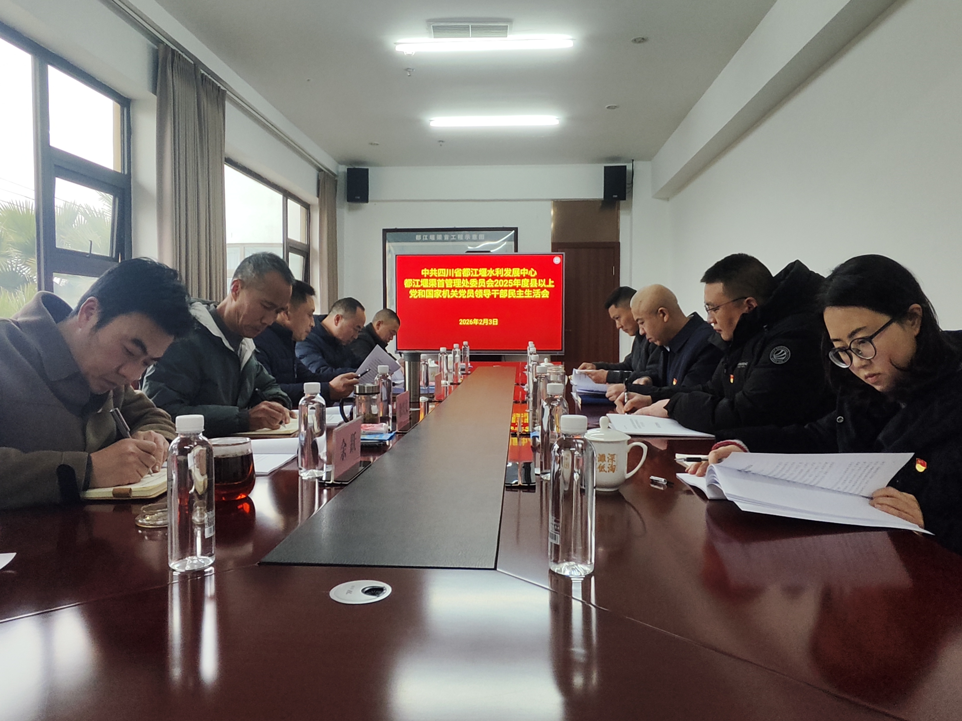 2月3日,都江堰渠首管理处党委召开2025年度县以上党和国家机关党员领导干部民主生活会,深入学习贯彻习近平新时代中国特色社会主义思想,全面贯彻落实党的二十届四中全会精神,以打攻坚战、持久战的决心与恒心,锲而不舍落实中央八项规定精神,推进作风建设常态化长效化,动真碰硬抓好巡视巡察及审计反馈意见整改,以优良作风凝心聚力、真抓实干,奋力开创四川现代化建设新局面。会议由处党委书记、处长杨桓主持。省都江堰水利发展中心党委委员、工会主席朱是,纪检监督三室、人事处、党群工作处有关同志到会指导。