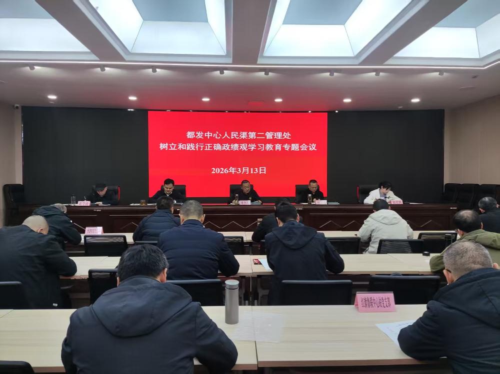 2026年3月13日,人民渠第二管理处召开树立和践行正确政绩观学习教育专题会议,学习习近平总书记关于树立和践行正确政绩观相关论述,传达《中共中央办公厅关于在全党开展树立和践行正确政绩观学习教育的通知》精神和中央党的建设工作领导小组、省委党建领导小组、水利厅党组、中心党委会议精神。会议由处党委书记、处长周李军主持,在家党委委员、中心纪委专职副书记、各党支部书记、各科站负责人参加。