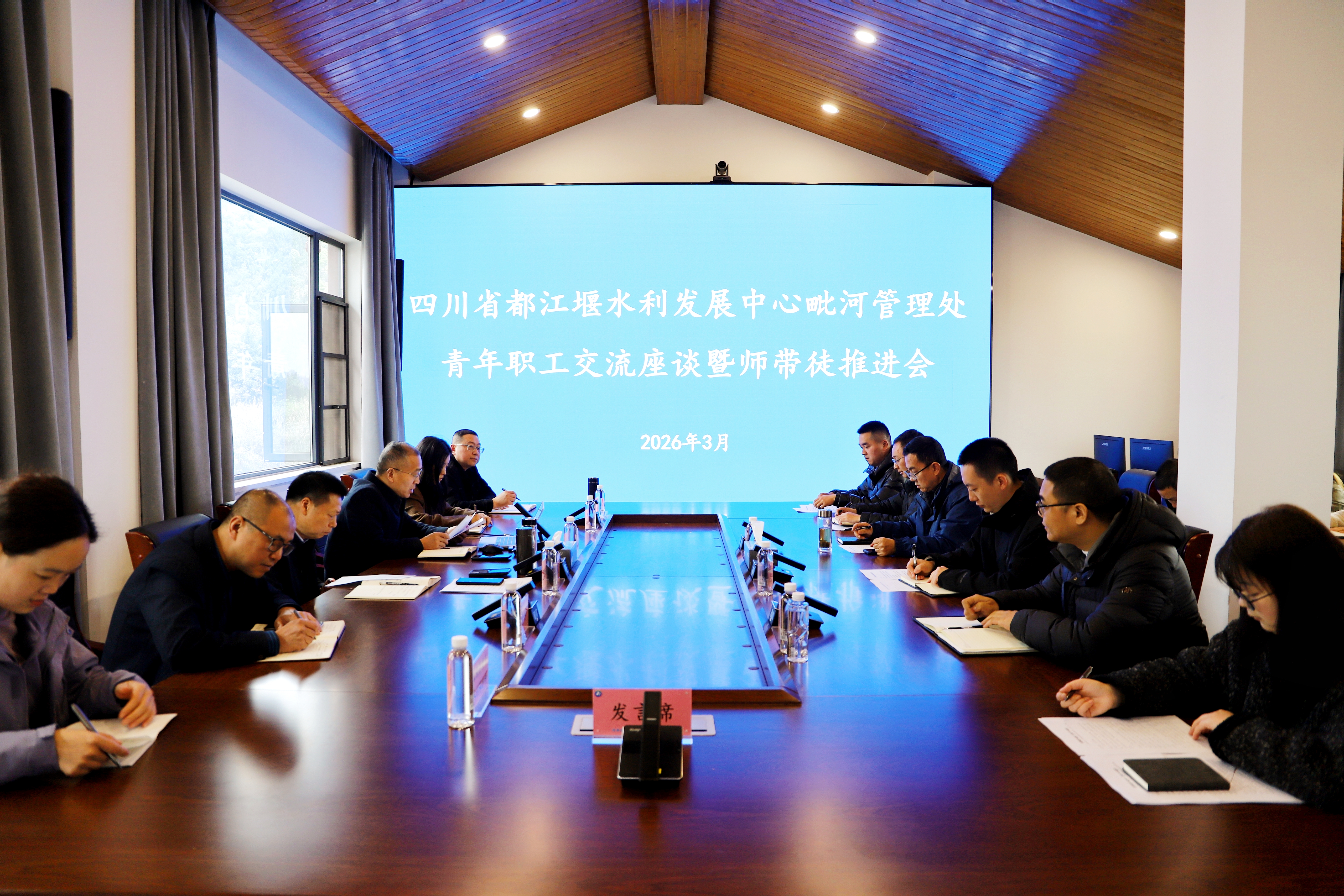 3月19日,毗河管理处在处指挥分中心召开青年职工交流座谈暨师带徒推进会。处领导、各部门负责人、青年职工及师徒代表参会。