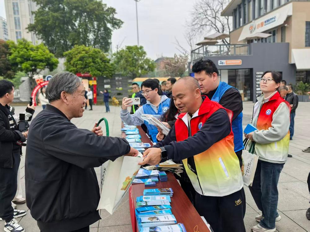 在什邡市雍湖公园,工作人员通过设置咨询台、悬挂横幅、摆放宣传展板、发放宣传资料等形式,对《长江保护法》《四川省河湖长制条例》《节约用水条例》等涉水法律法规进行现场宣讲,用“淘米水浇花、洗菜水冲厕”等家常话,把节水知识讲到老百姓心坎上,让节水理念从“耳边过"变成"心里留”。