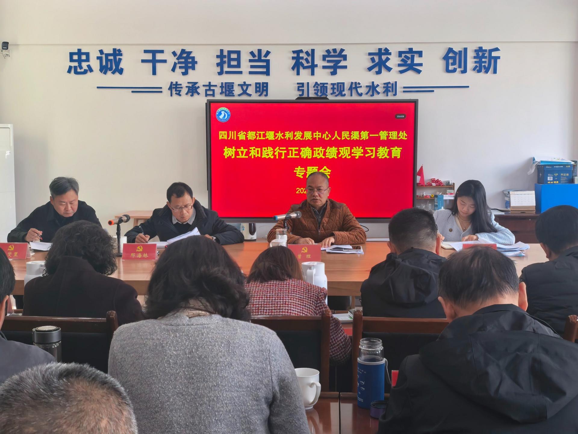认真落实厅党组、中心党委关于开展树立和践行正确政绩观学习教育工作要求。在全党开展树立和践行正确政绩观学习教育。传达学习习近平总书记关于树立和践行正确政绩观学习教育的重要论述。人民渠第一管理处召开树立和践行正确政绩观学习教育专题会议。以推动工作成效和群众满意度检验学习教育成果。