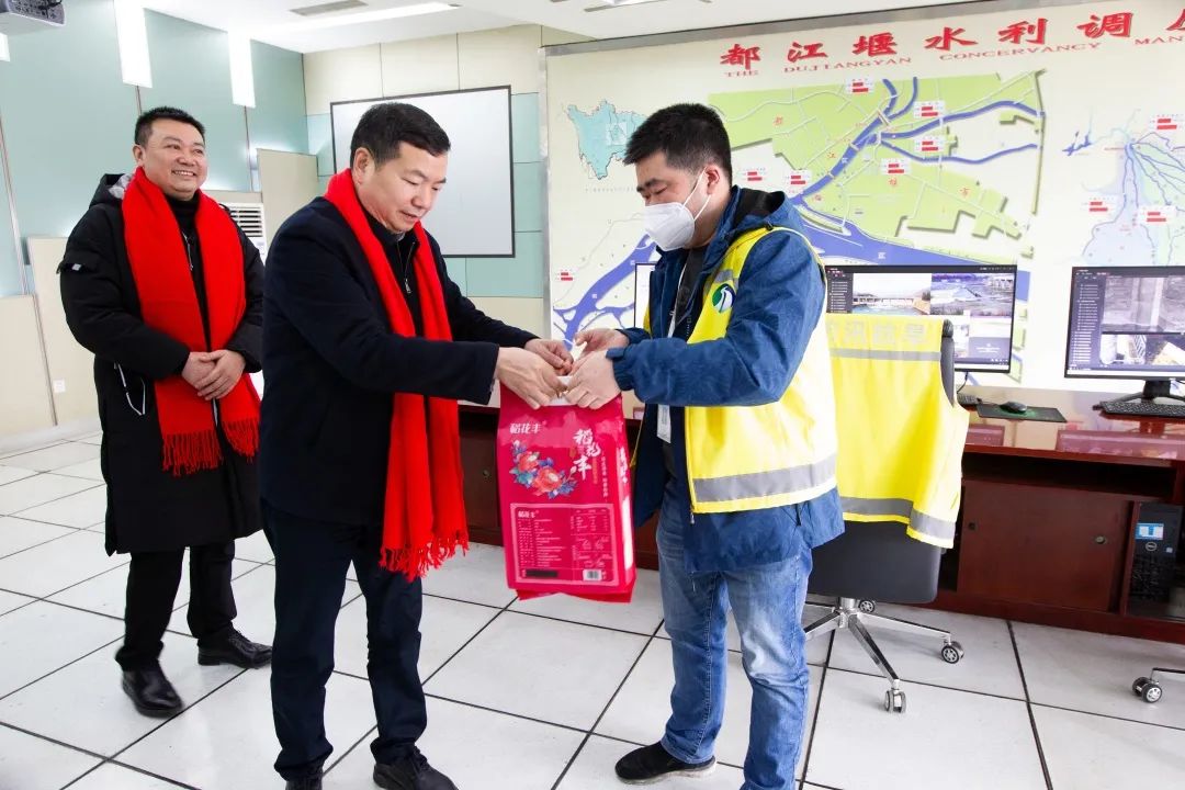 1月22日,农历大年初一,都江堰水利发展中心党委书记、主任朱泽华亲切看望慰问灌区值班值守人员,并向春节期间依然坚守在值班岗位和工作一线的同志们致以诚挚的问候和新春的祝福。每到一处,朱泽华都详细了解春节期间各项工作安排,并感谢他们一年来的辛勤工作,希望他们扎实做好春节期间值班值守各项工作,以更加饱满的精神状态,值好班、站好岗,为灌区人民欢度春节提供有力保障,为都江堰灌区经济社会发展和繁荣稳定再做新贡献。