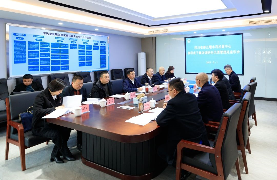 3月1日,省都江堰水利发展中心党委书记、主任朱泽华带领中心领导班子到东风渠管理处开展集体调研,专题研究了东风渠管理处财务执行预算安排、投建运管“两手发力”试点等工作。
