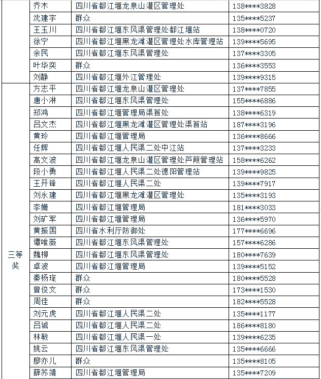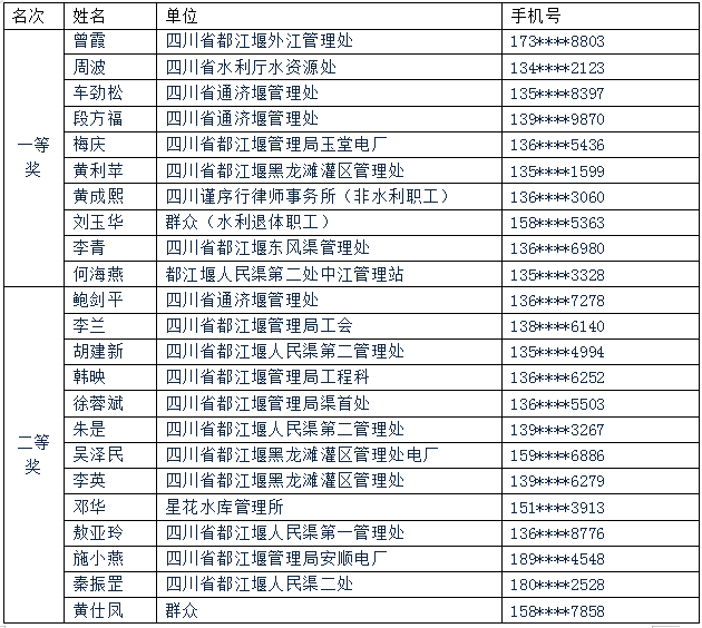 关于“2020年《四川省都江堰水利工程管理条例》答题活动”获奖人员名单的公告