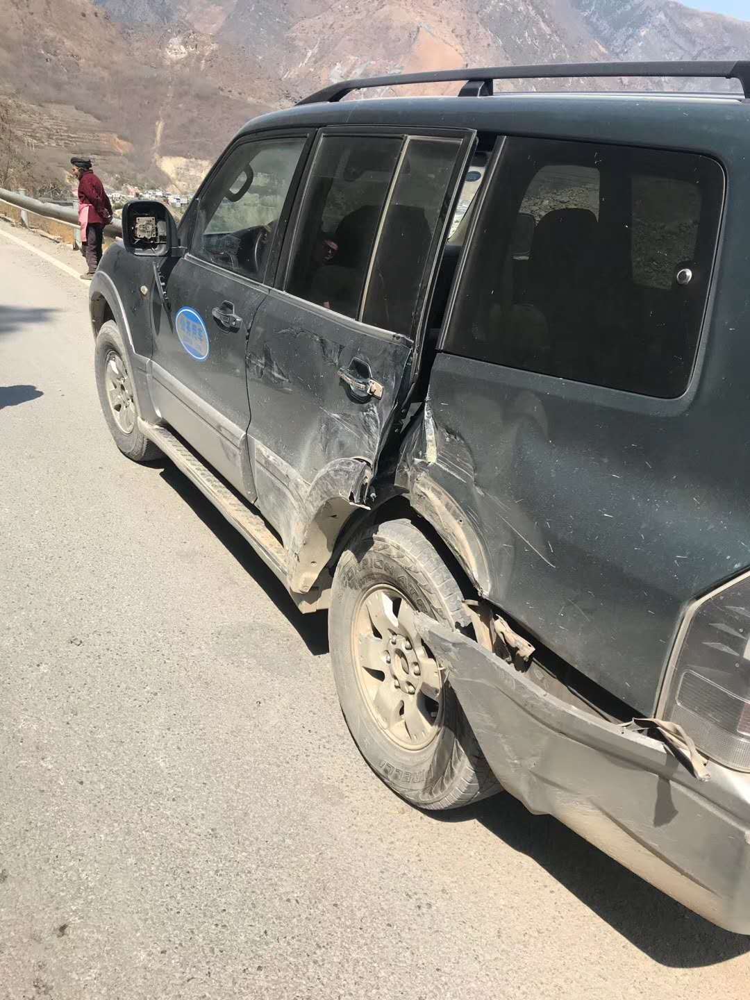 复杂多变的气候,让督战队难以捉摸,但更头疼的还是路上的艰险。傍山道路上随时都潜伏着意外,山上滚石会在不经意间精准打靶,坑洼的泥路上随时都准备让车侧滑,悬崖边上的便道仅一车宽,九转千回的羊肠小道时刻都严格得考验着司机师傅的车技和胆量。一路上,有天灾也有人祸。3月30日,督战队在沿江道路行驶途中,被一辆失控大巴车迎面撞击,督战队的车被撞滑行数米,差一点就掉进了金沙江。所幸并无人受伤。队员在交警现场处理后,收拾好心情,乘着被损车辆继续完成当日的工作任务。