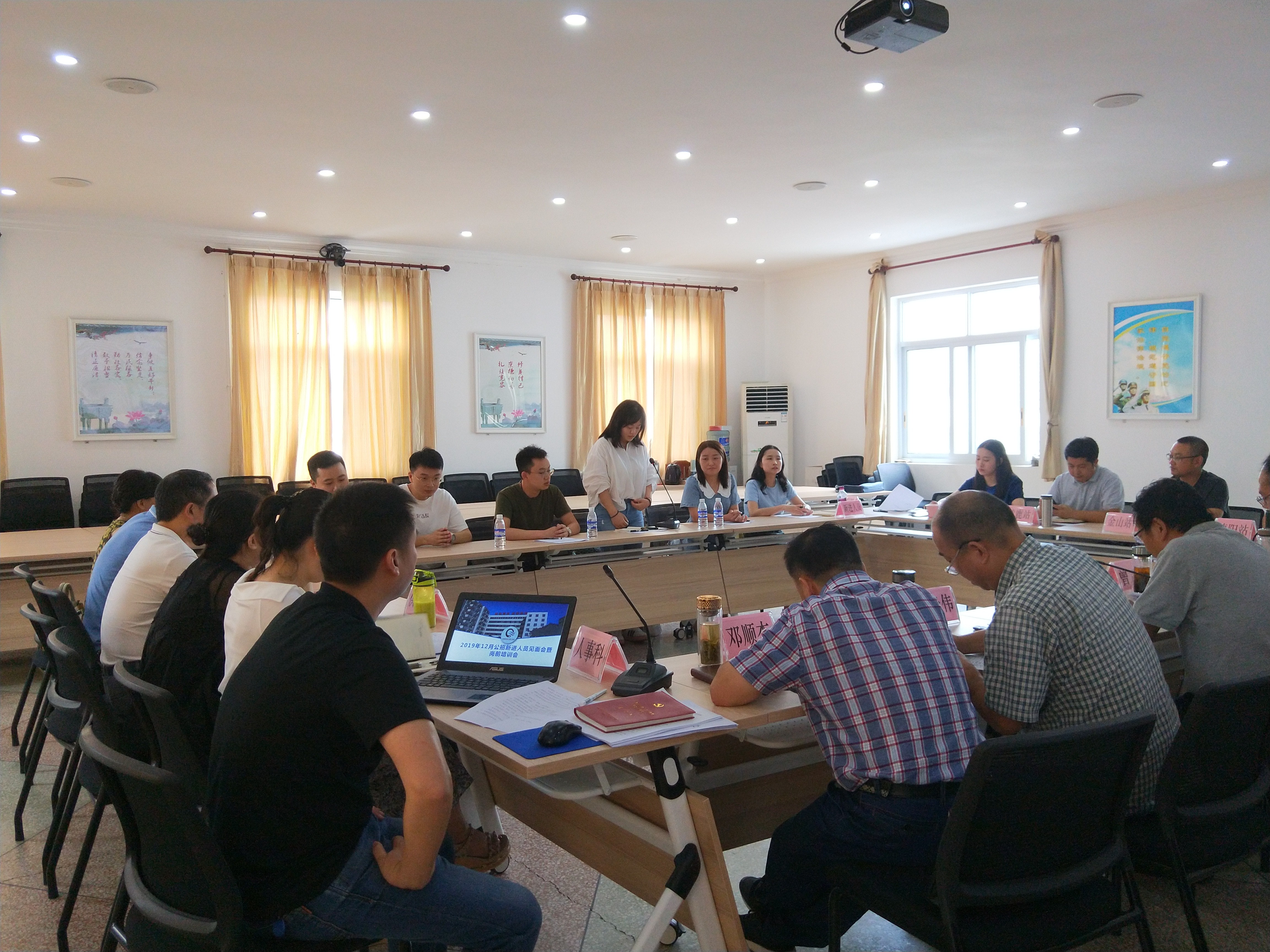 为加强单位人才队伍建设,推动青年职工更好适应岗位、投身单位建设,7月13日,人民渠二处召开2019年12月公开招聘工作人员见面会暨岗前培训会。党委书记、处长曾理,纪委书记王钦、副处长朱是、副处长魏光伟、工会主席邓顺杰出席会议。相关职能科室负责人与6名新进人员参加会议。会议由人事科副科长邓涛主持。