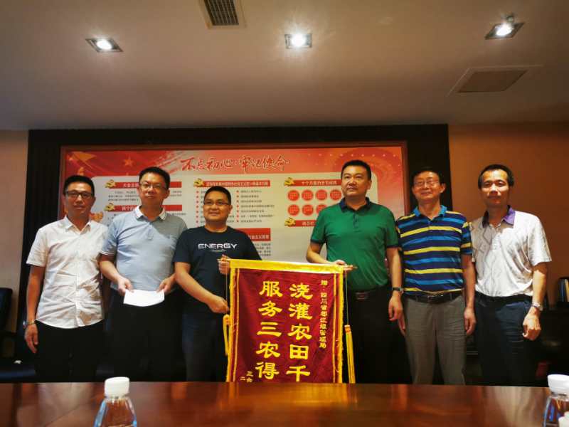 7月9日,三台县水利局王德禄副局长带领团结水库管理中心一行来到人民渠二处。王副局长表示受三台县人民政府委托,谨代表全县150万人民向人民渠二处送来锦旗一面,《感谢信》一封。感谢人民渠二处在2020年抗旱保春耕中为三台县人畜饮水安全、大春栽插工作所做出的突出贡献。
