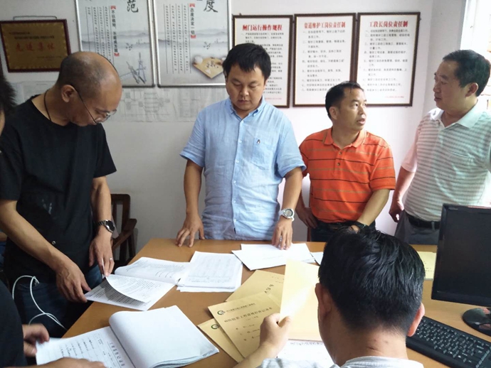 现场组一行冒着淅沥沥的小雨深入各工段,对水利工程、闸控设备、信息化设备、备用电源、防汛物资、工作记录等进行了现场检查,对存在的不足及时提出建议;同时,处领导每到一处都与职工沟通交流,了解基层一线职工生活、工作状况及思想诉求,为大家解放思想、鼓劲加油。资料组一行,针对自己分管的业务工作,对中江站各项工作资料进行了详细检查和询问,并及时提出指导意见和要求。