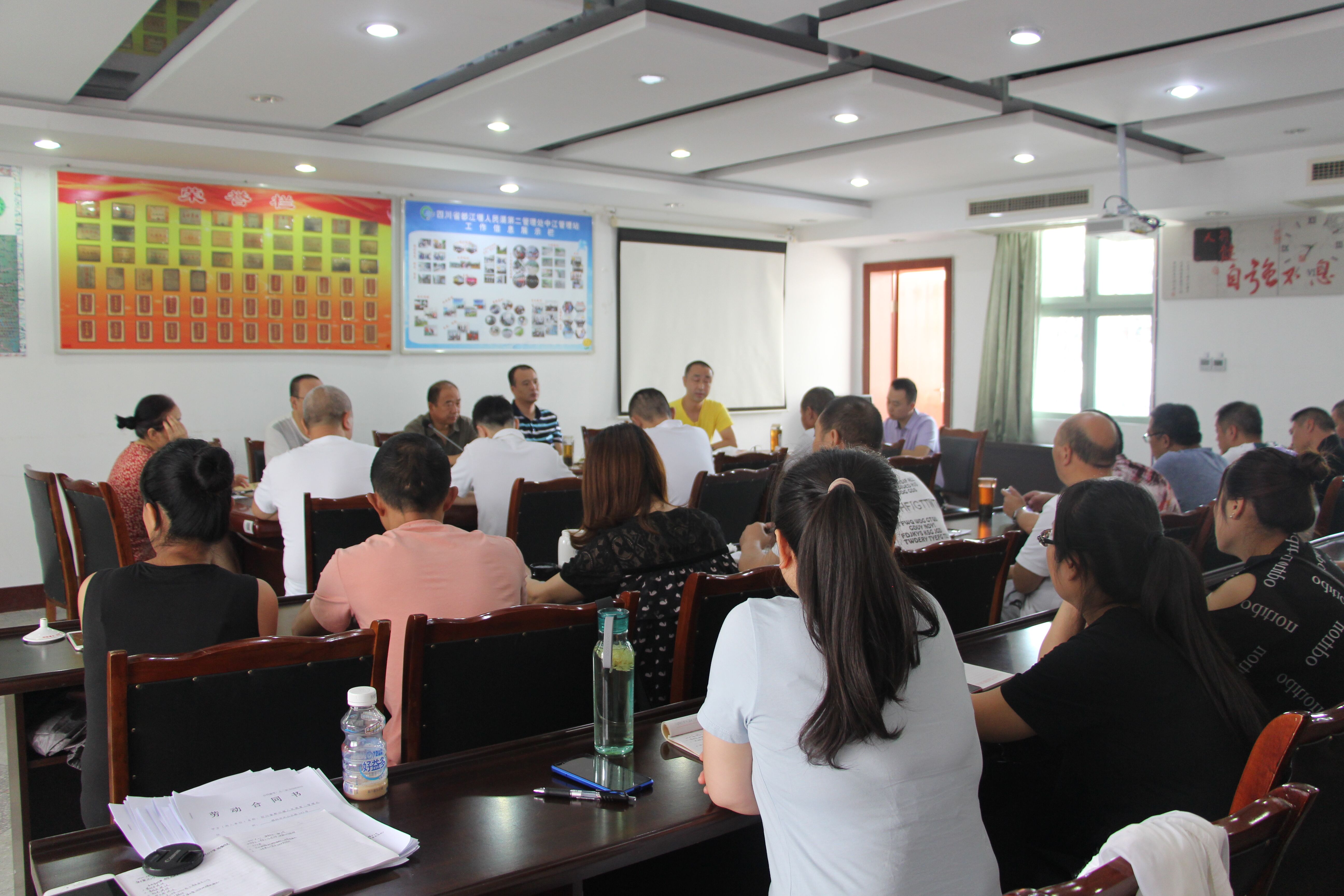 2020年8月21日,中江站召开职工会,全站在岗职工参加会议。会议由党支部书记、站长李坤洲主持,人民渠二处副处长魏光伟出席会议。