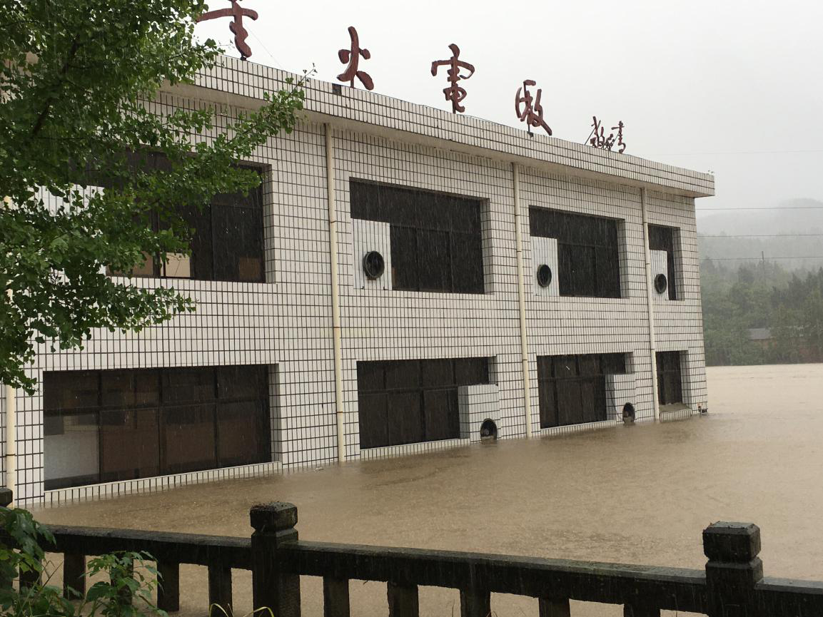 此外,持续降雨导致凯江河河水猛涨,16日下午16:55分,洪峰经过星火电站,电站尾水水位达8.98米,流量3111立方米/秒,创历史新高,防汛指挥小组及时响应,果断决策,在厂用供电停断后,立即协调德阳站、中江电力公司利用五七期干渠洪水开启2号机组,向厂区供电,保障了集水井、山洪沟洪水抽排成功;5人抢险小组在洪水翻过升压站平台涌向厂房的关键时刻,迅速前往堵水,至17:55分,历时一个小时洪峰过境,电站安全。