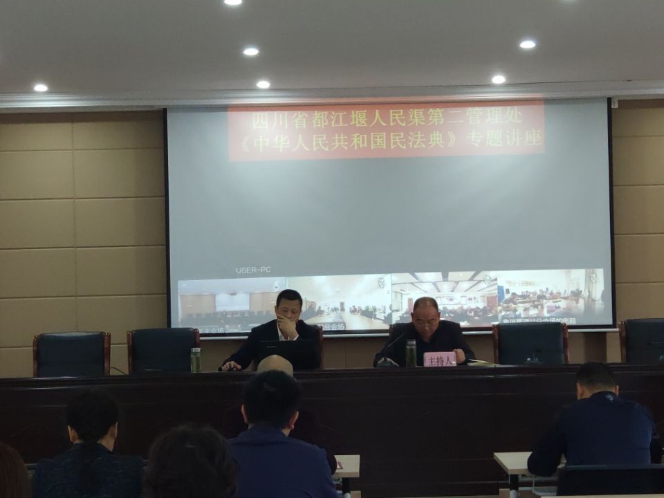 周波太副院长、高级检察官通过民法典编纂的现实性、基本原则及过程等方面向大家讲述了民法典的诞生过程,并结合日常生活中的常见案例,深入浅出、化繁为简地解读了《民法典》的新内容、新亮点,将复杂的民法理论以通俗易懂的形式展现给听众;同时,结合我处实际,详细讲解了民法典中涉及水利工作的具体法律条文,提高我处职工运用民法典化解矛盾纠纷、促进社会和谐稳定能力和水平,引导大家带头做好《民法典》相关宣传。