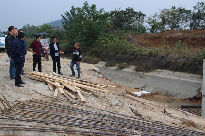 10月24日,人民渠二处总工杨刚、工会主席邓顺杰带领工程科、供水科等一行到中江站实地检查指导“7.11”水毁工程、2020年岁修工程、“8.16”抢险工程和红旗分干渠在建工程,并对具有水文化保护价值的老高桥工段房修缮进行规划。中江站有关人员陪同参加。
