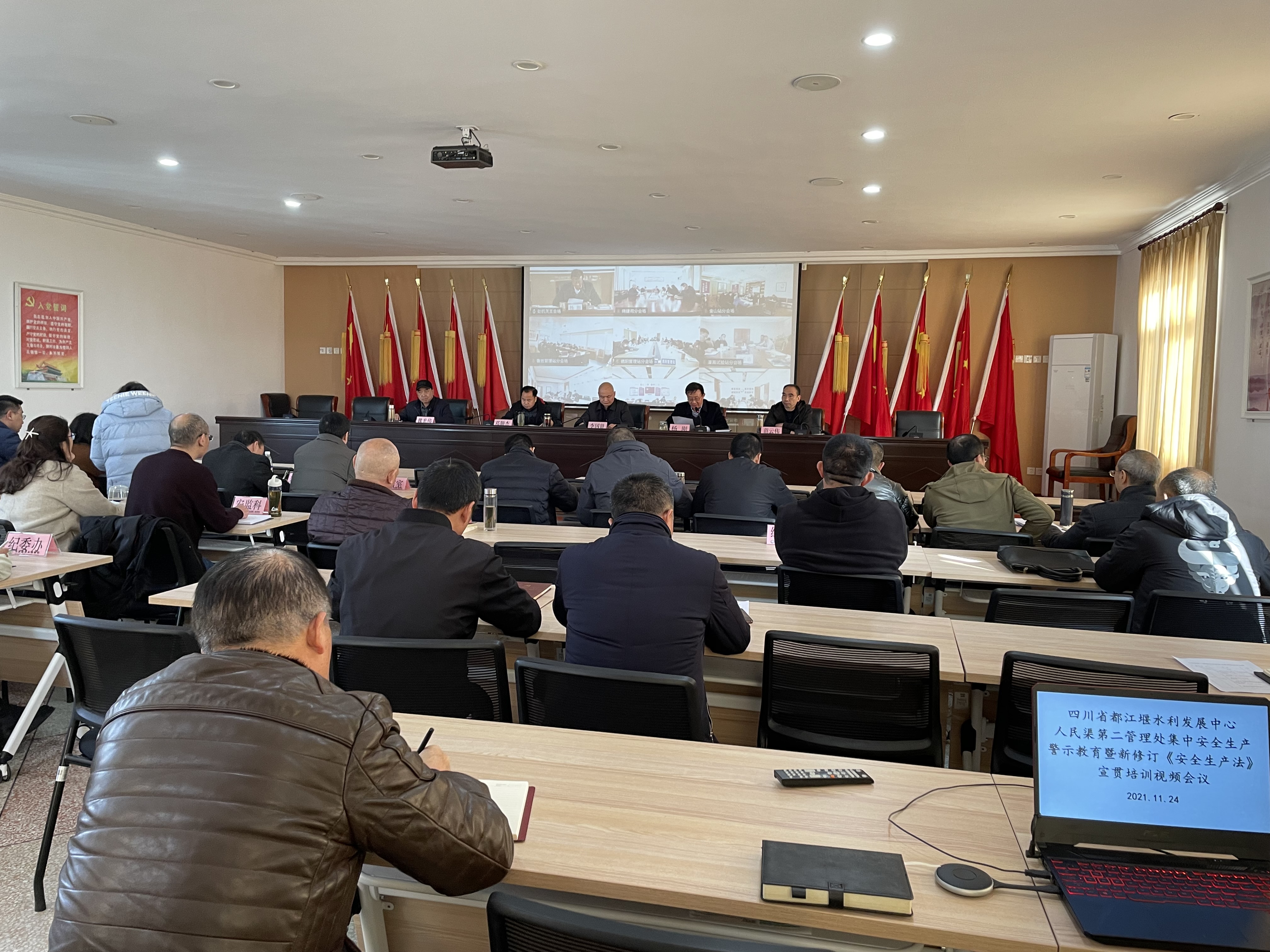 为深入贯彻落实新修订的《安全生产法》,进一步提高人民渠二处安全生产管理工作水平,夯实安全生产基础,强化安全生产主体责任。11月24日,人民渠二处在处机关六楼会议室召开安全生产警示教育暨新修订《安全生产法》宣贯培训视频会议。在家处领导、机关中层干部、基层单位负责人、红旗分干渠项目部、安办工作人员在机关主会场参加会议,其余职工在8个分会场参加会议。