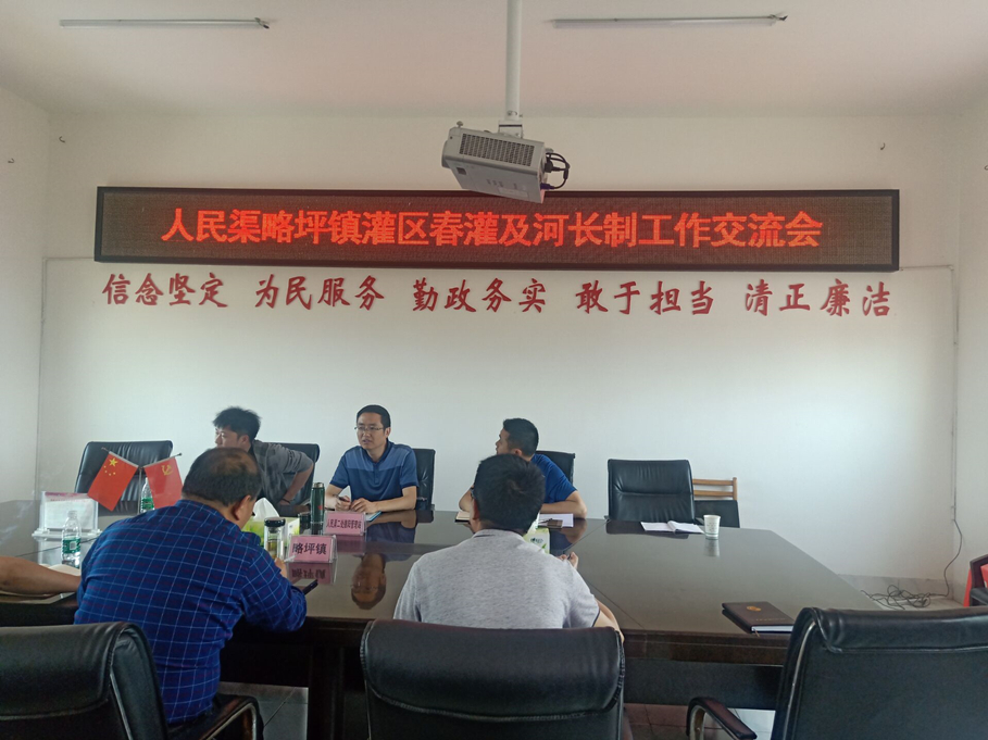 随后,大家就春灌工作、河长制及清“四乱”工作进行了座谈交流。座谈会上略坪镇党委书记郑文斌对略坪镇农业产业结构调整、春灌需水情况进行了介绍,就河长制工作、清“四乱”工作进行了交流。在交流过程中,陈川站长对略坪镇提出了几点意见:一是根据今年来水形式,建议政府提醒沿渠村民适当推迟插秧时间,避免渠道停水无法正常引水灌溉。二是建议略坪镇按照河长制职能职责做好辖区内沿渠村民的教育和管理,禁止在渠边倾倒垃圾及废弃建筑物,如发生类似现象,积极进行处理。三是对略坪镇境内人民渠周边的“四乱”问题,双方将继续加强沟通,对发现的问题按时间节点逐一处理。
