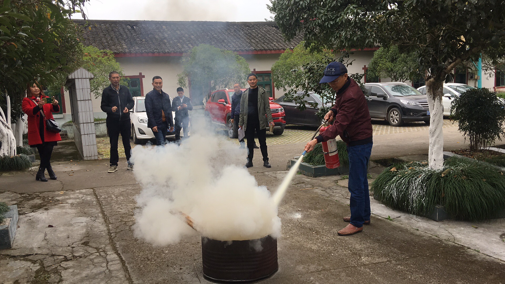讲座结束后,在李教官的指导下,还进行了消防灭火演练。