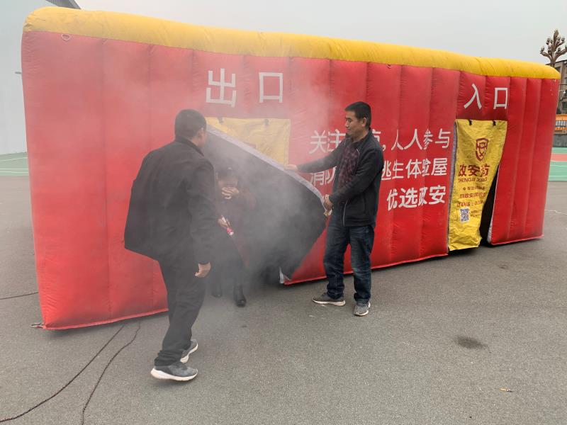 培训结束后,参与培训的职工在站机关院内开展了火场逃生模拟演练。借助政安消防培训中心无偿提供的演练帐篷,参与演练的职工每人都进行了一次演练。