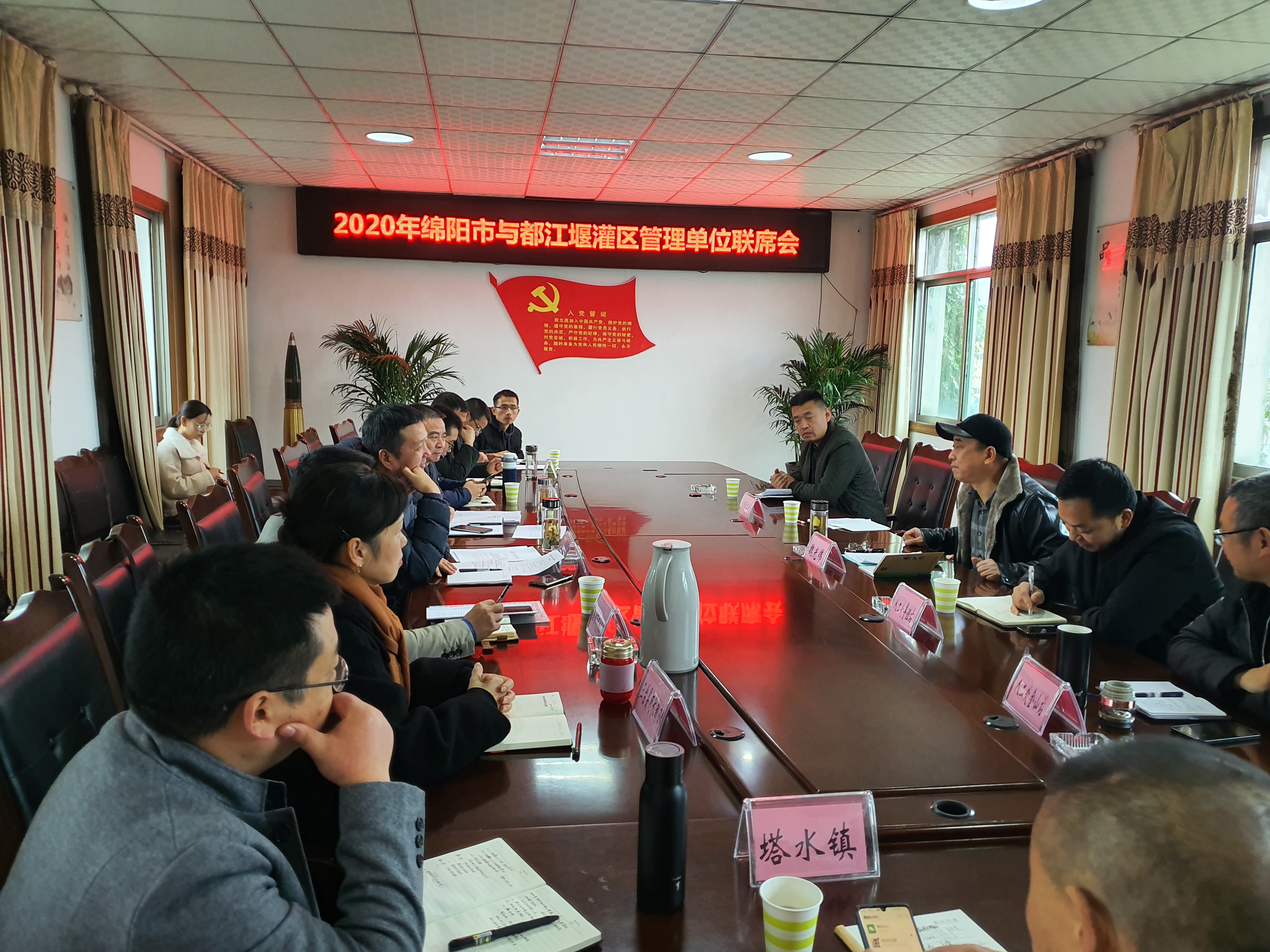 人民渠二处河长制推进办公室及相关管理站,绵阳市河长制办公室、安州区河长制办公室、涪城区河长制办公室、三台县河长制办公室,塔水镇政府相关人员参加座谈会。