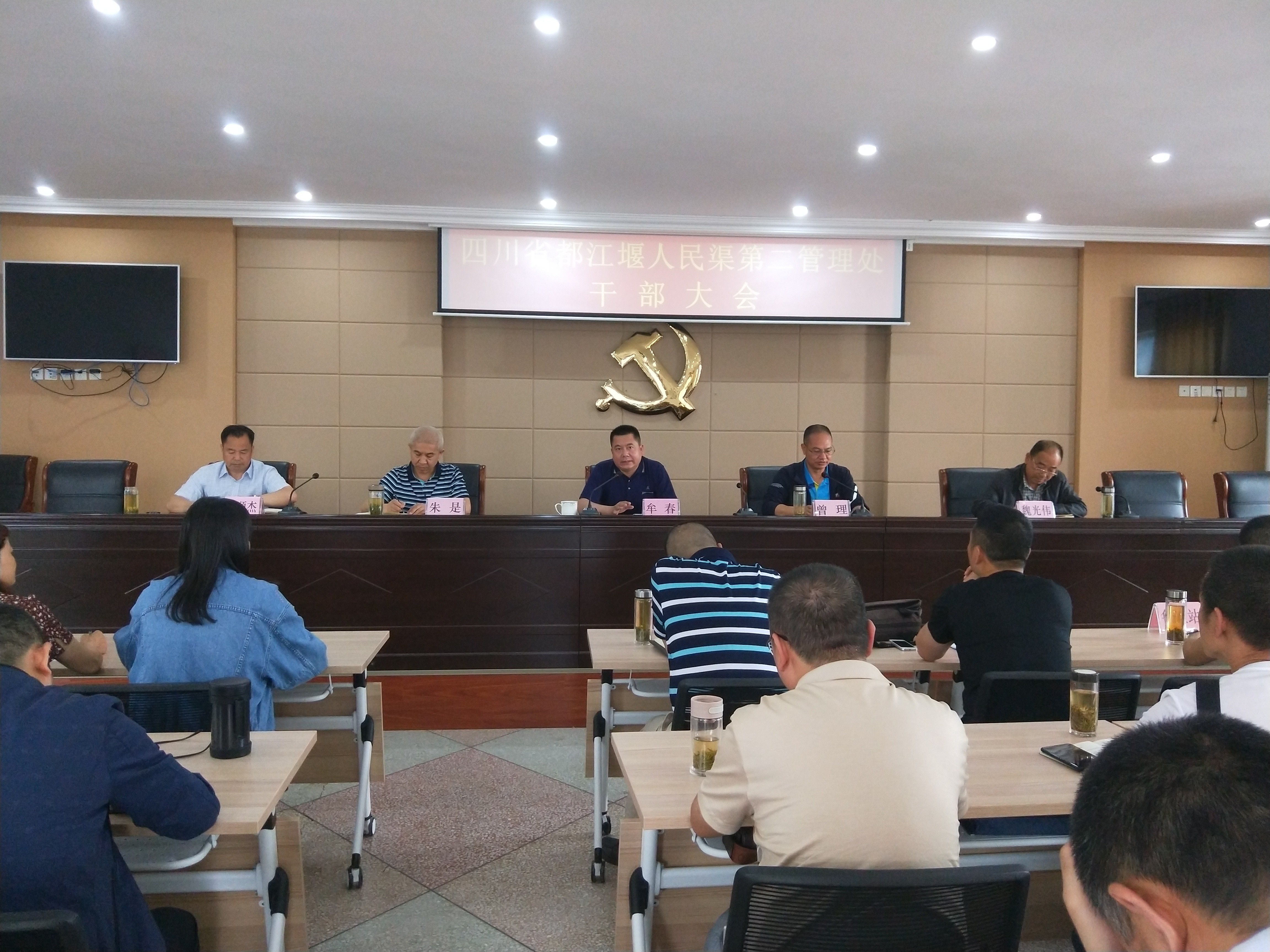 2020年5月12日,人民渠二处召开干部大会。会议由党委书记、处长曾理主持,处级领导干部和全体中层干部参加会议,水利厅人事处处长牟春一行到会指导。