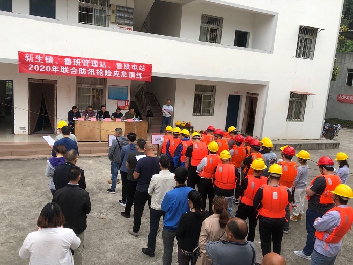 本次防汛演练预设场景为油房垭所在区域出现期间暴雨,河水水位急速上涨,鲁联电站根据《鲁联电站2020年防汛应急预案》先后启动三级响应、二级响应,在新生镇人民政府、鲁班管理站的大力支援配合下,成功进行了应对。