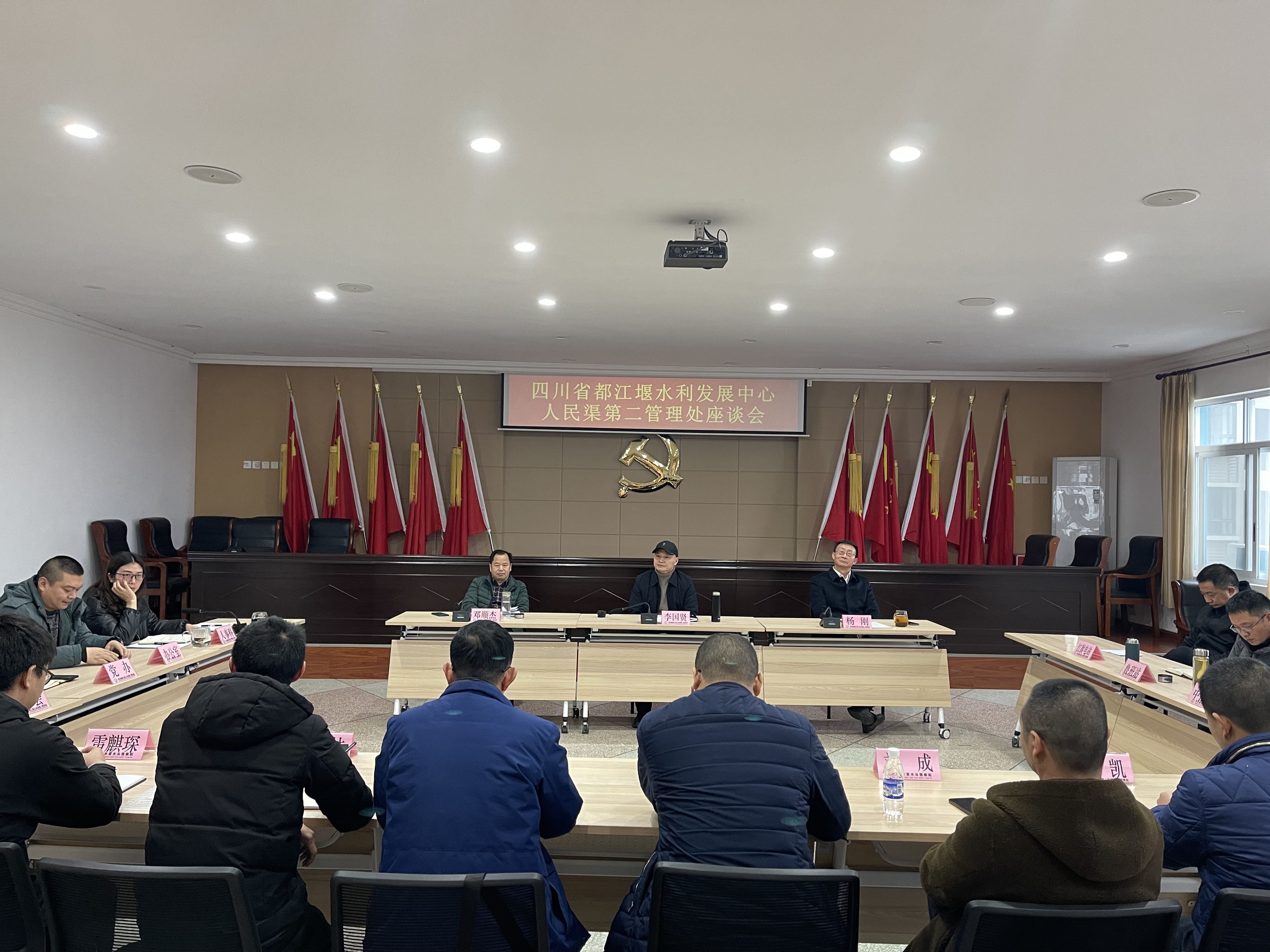 为加快搭建毗河管理处工作组织构架,保障毗河管理处工作的正常开展,按照都发中心统一安排,我处选调9名专业技术人员到毗河管理处工作。2022年1月26日下午,在人民渠第二管理处机关六楼会议室召开了调动人员座谈会。李国贤处长、邓顺杰副处长、杨刚副处长、人事科、办公室、党办、工会办及调动人员部门负责人参加了本次座谈会。