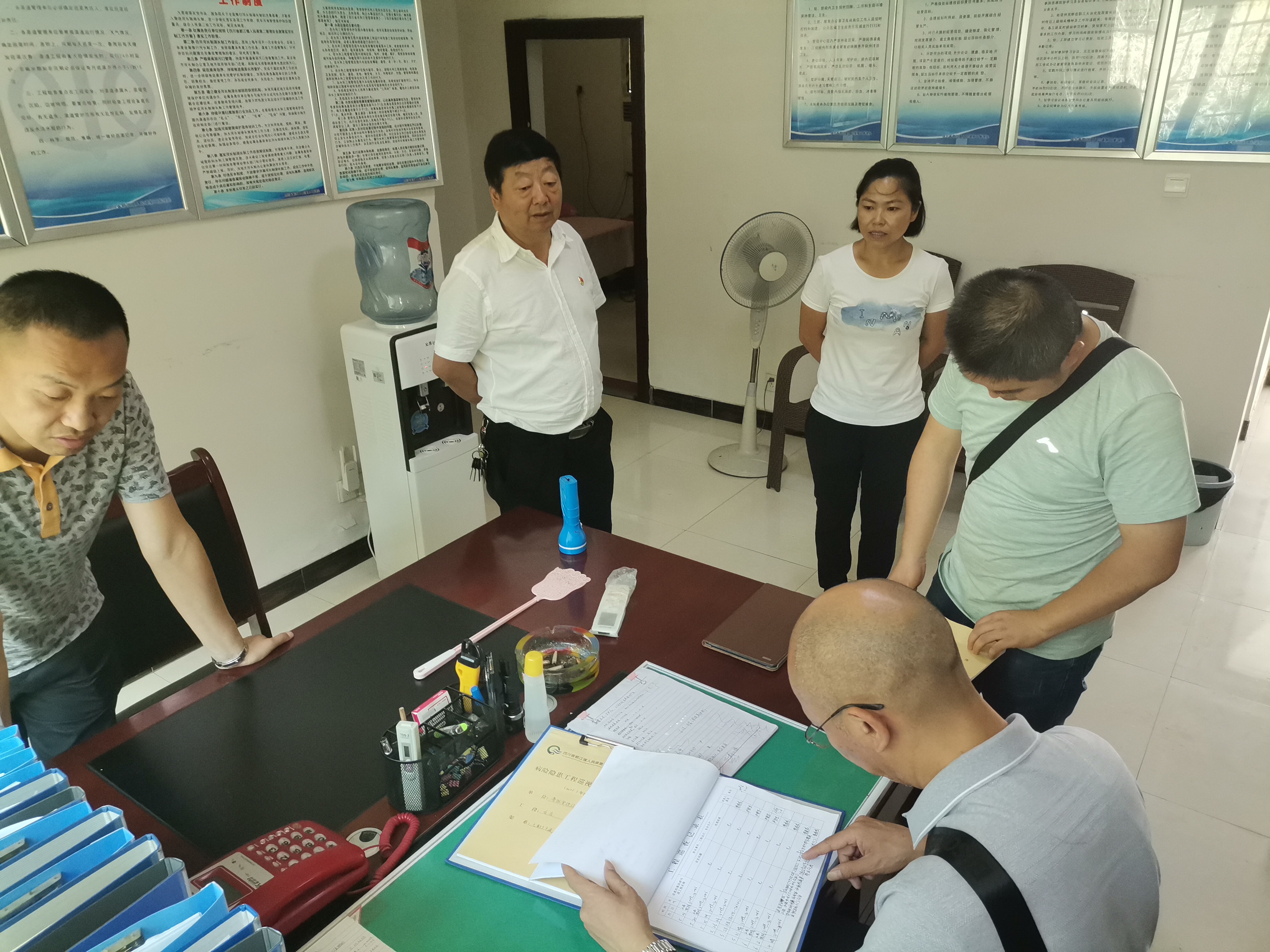 为全面贯彻落实《水利部办公厅关于水利工程安全隐患行动自查内容和督导检查工作安排的函》、《四川省水利厅关于开展全省水利安全隐患大排查的紧急通知》、《四川省都江堰人民渠第二管理处安全生产集中整治专项行动方案》等文件要求,确保鲁班站水利工程安全运行,6月29日,人民渠二处纪委书记王钦带领处安全集中整治检查组对鲁班站进行安全检查。鲁班站站领导及站相关人员陪同。