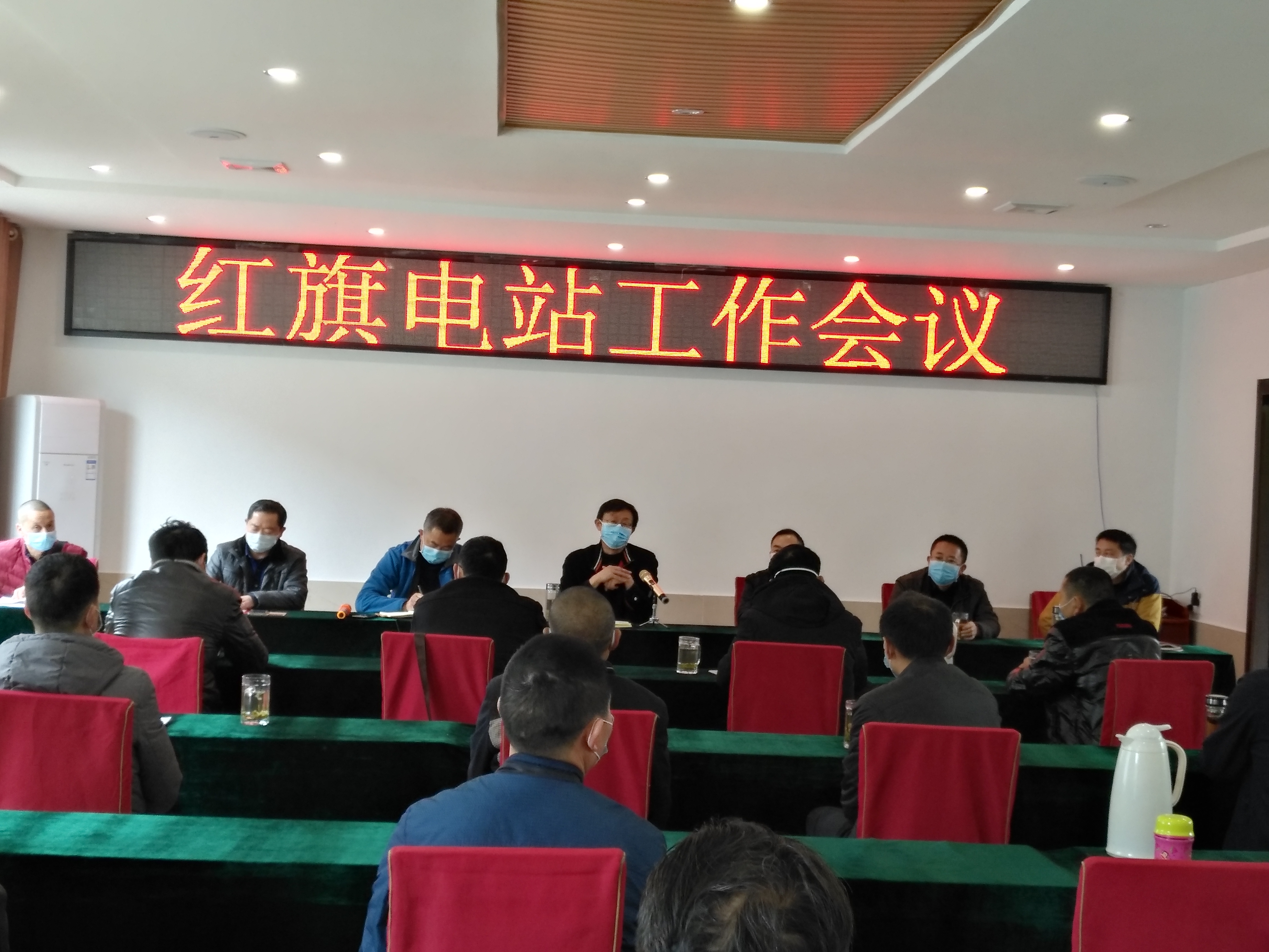 2020年3月13日下午,红旗电站召开职工大会。管理处杨刚总工,党办李万军主任,综经科胡小驹科长、主任工程师刘洪强、副主任工程师王林,人事科副科长邓涛出席会议。会议由杨刚总工主持,全站职工参加会议。