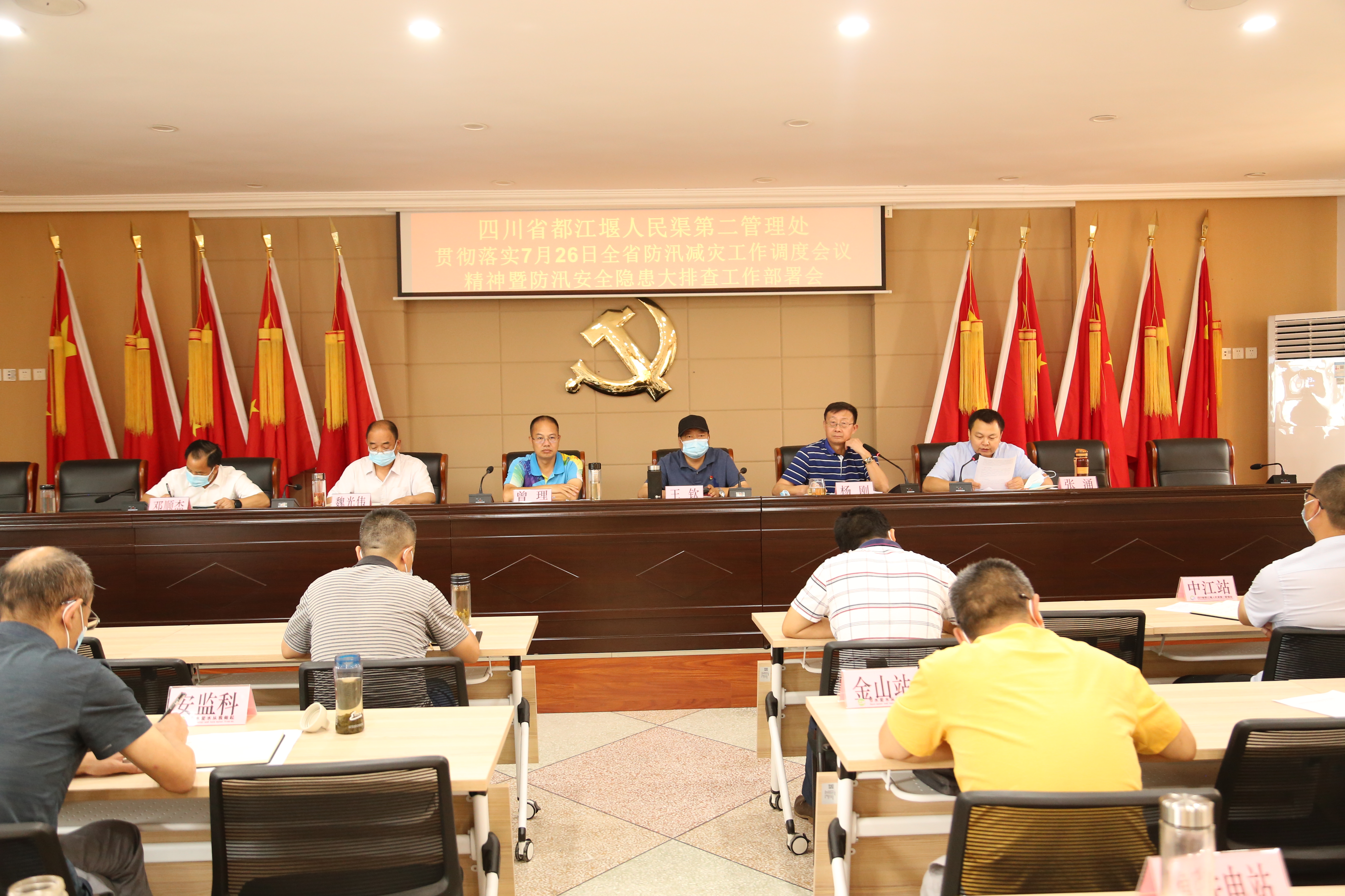 会议传达学习7月26日在全省防汛减灾工作调度会议上尧斯丹副省长和郭亨孝厅长的讲话精神,解读7月30日全省水利行业防汛安全隐患大排查工作要求。