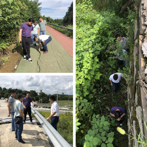 站安全巡查人员对人民渠四期尾干渠、五七期、六期干渠的防汛道路、渠提边坡,泄洪闸、节制闸等水利工程设施设备进行了安全排查,排查出因填方外边坡沉降致防汛道路裂缝12处,树木倒伏入渠4处,边坡少量沙石滑坡入渠3处。其中五七期四号渡槽出口18+150处挡墙裂缝错位致防汛路面沉降达10公分、裂缝8公分,巡查人员与工段同志立即对沉降裂缝路面铺设防水布、拉起警示带、放置警示牌,并将此情况通知传达相关村社,请沿渠村民出行务必注意安全。次日,工程管理科到我站查看防汛道路隐患情况并提出建议整治方案,要求全力保障汛期道路安全通畅。