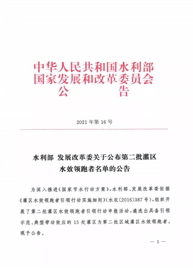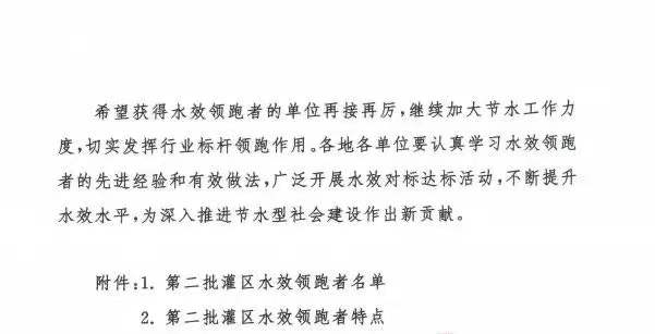 此次水效领跑者引领活动遴选出15处灌区为典型示范区,公告强调各单位要认真学习水效领跑者的先进经验和有效做法,开展水效对标活动,不段提升水效水平,为深入推进节水型社会建设作出新贡献。