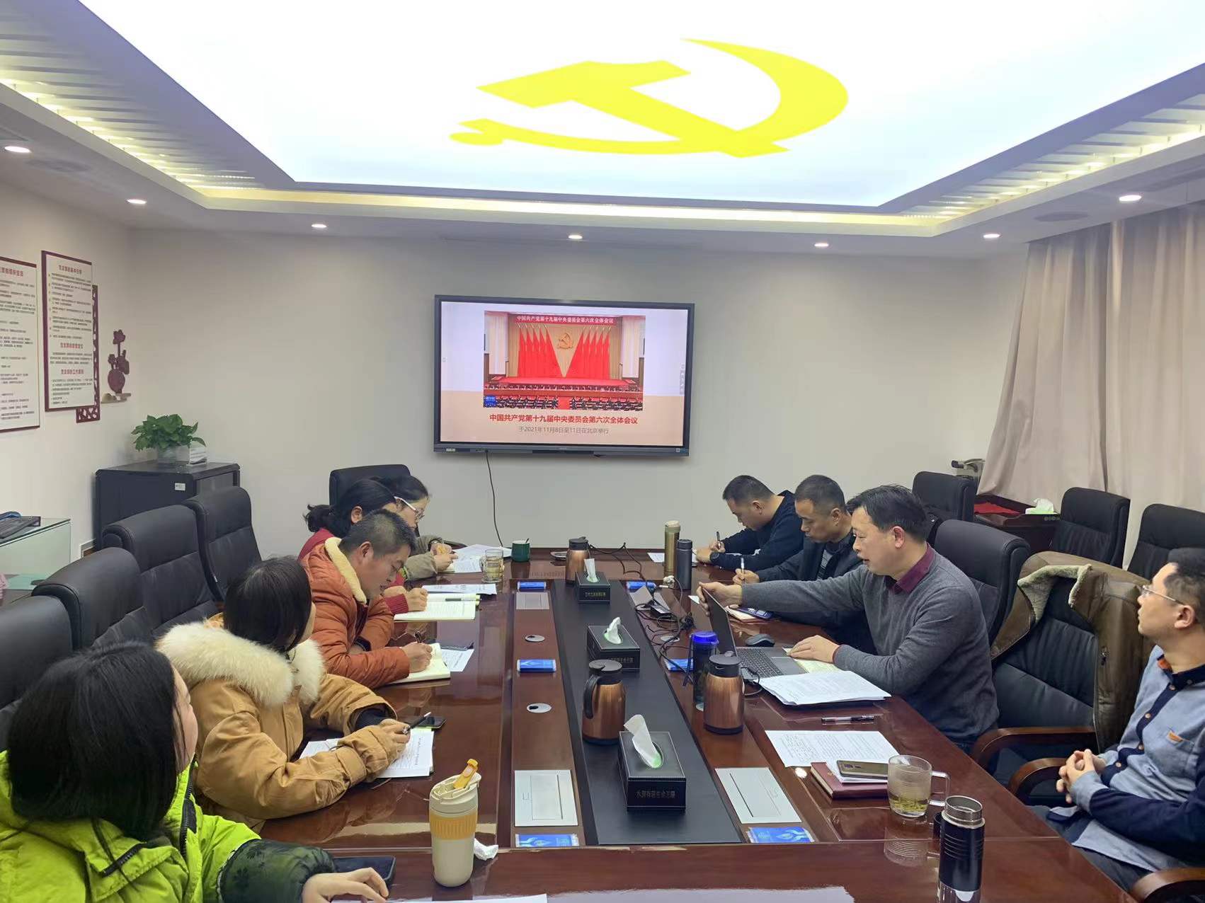 最后,简平科长组织大家学习了党的十九届六中全会会议精神,要求全科室人员学深悟透全会精神,深刻领会党的初心使命,全面加深对党的百年奋斗历程的伟大成就和历史经验的理解,以史为鉴、开创未来,埋头苦干、勇毅前行,为实现第二个百年奋斗目标、实现中华民族伟大复兴的中国梦而不懈奋斗。