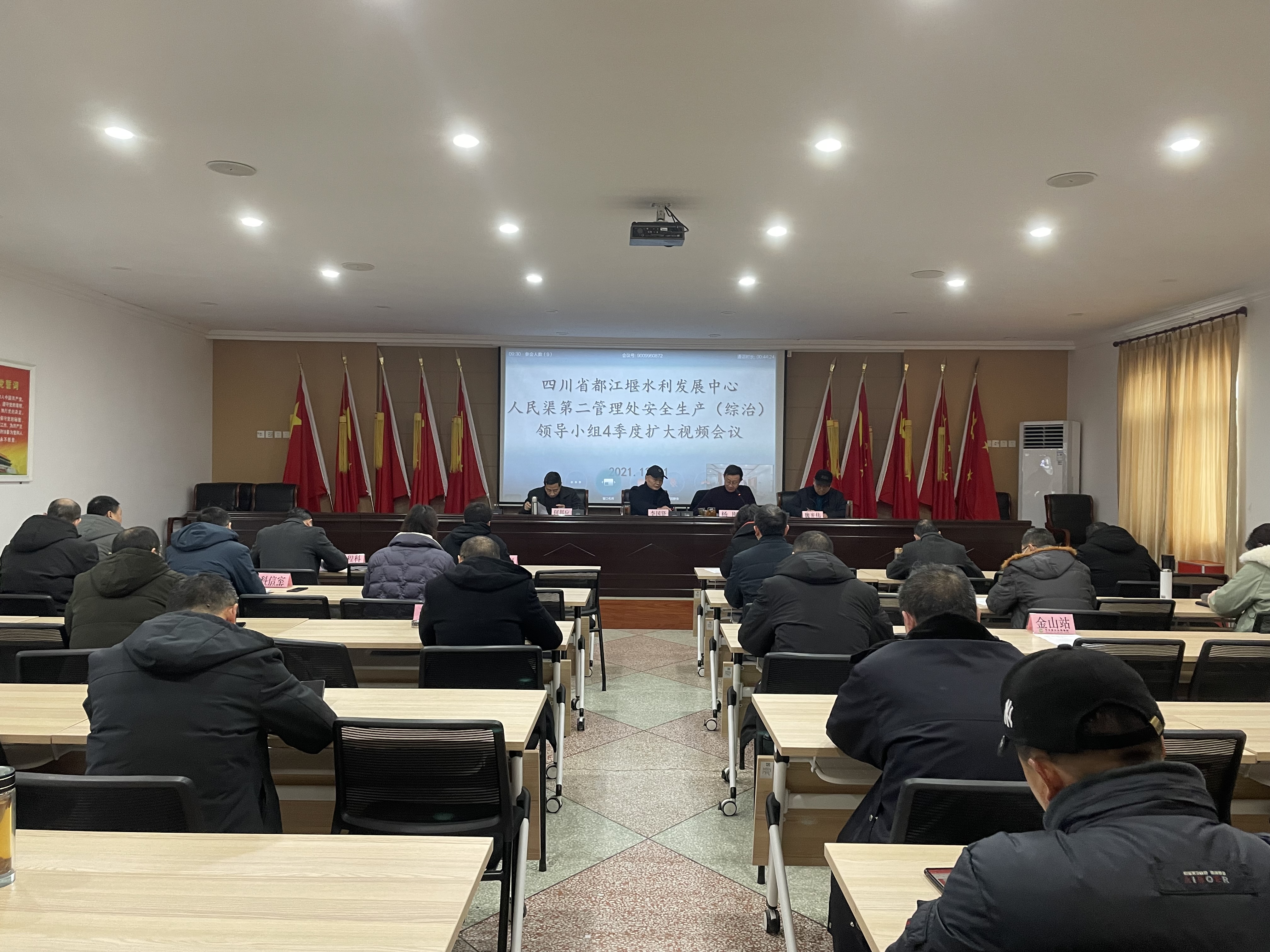会议传达了厅安办及都发中心安全生产工作会议精神和近期上级安全生产相关文件精神;宣读了《四川省都江堰水利发展中心人民渠第二管理处关于表扬2021年度安全生产暨综合治理、安全生产、综合治理先进单位》文件,并从14个专题领域对全处岁末年初安全生产百日大会战工作进行安排部署。