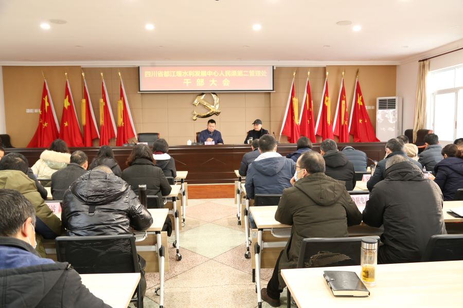 2021年12月29日,四川省都江堰水利发展中心人民渠第二管理处召开干部大会。水利厅人事处考察组、人民渠二处在家处领导、各部门负责人及退休职工代表参加了会议,会议由人民渠第二管理处党委书记、处长李国贤主持。