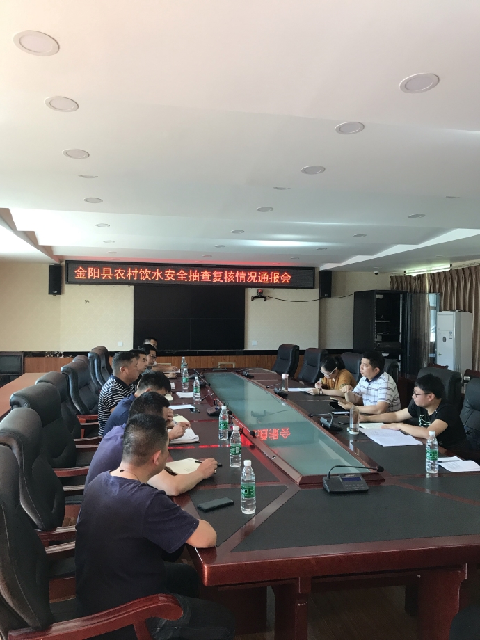5月14日在金阳县水利局同相关人员召开了农村饮水安全抽查复核情况通报会,工作队就发现的问题进行了通报。主要问题包括水资源缺少,季节性缺水明显;撤乡并镇导致乡(镇)政府工作人员变动大,农村饮水安全相关负责人员职责划分导致管理方面存在不足;群众的需水、节水意识薄弱。