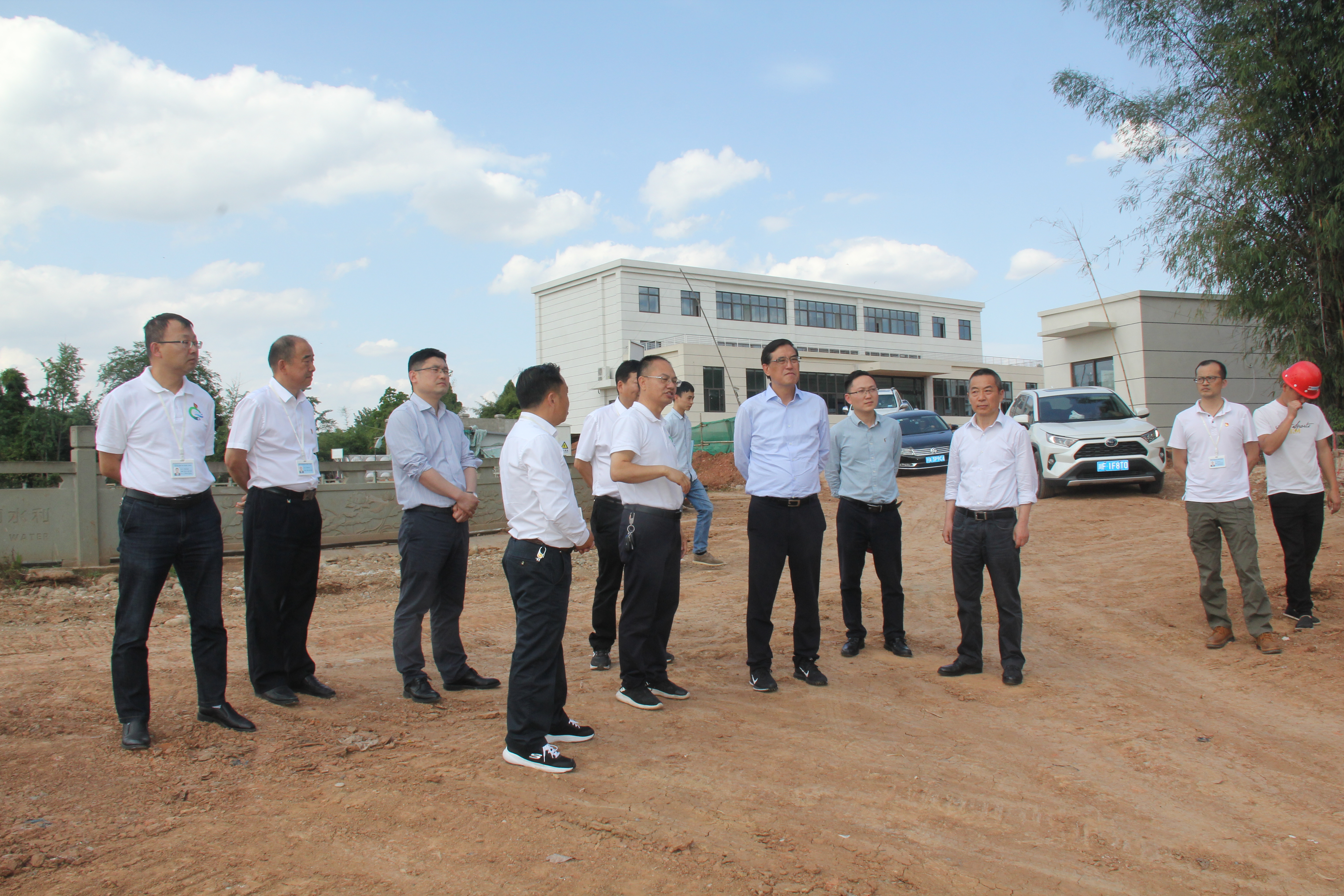 阳光照耀下的试验站,工人们正在紧张有序地开展各项建设工作。人民渠二处负责人向厅领导汇报了试验站建设概况、建设进展,拟开展的试验课题,与高校、科研院所合作模式,科技成果应用示范等。