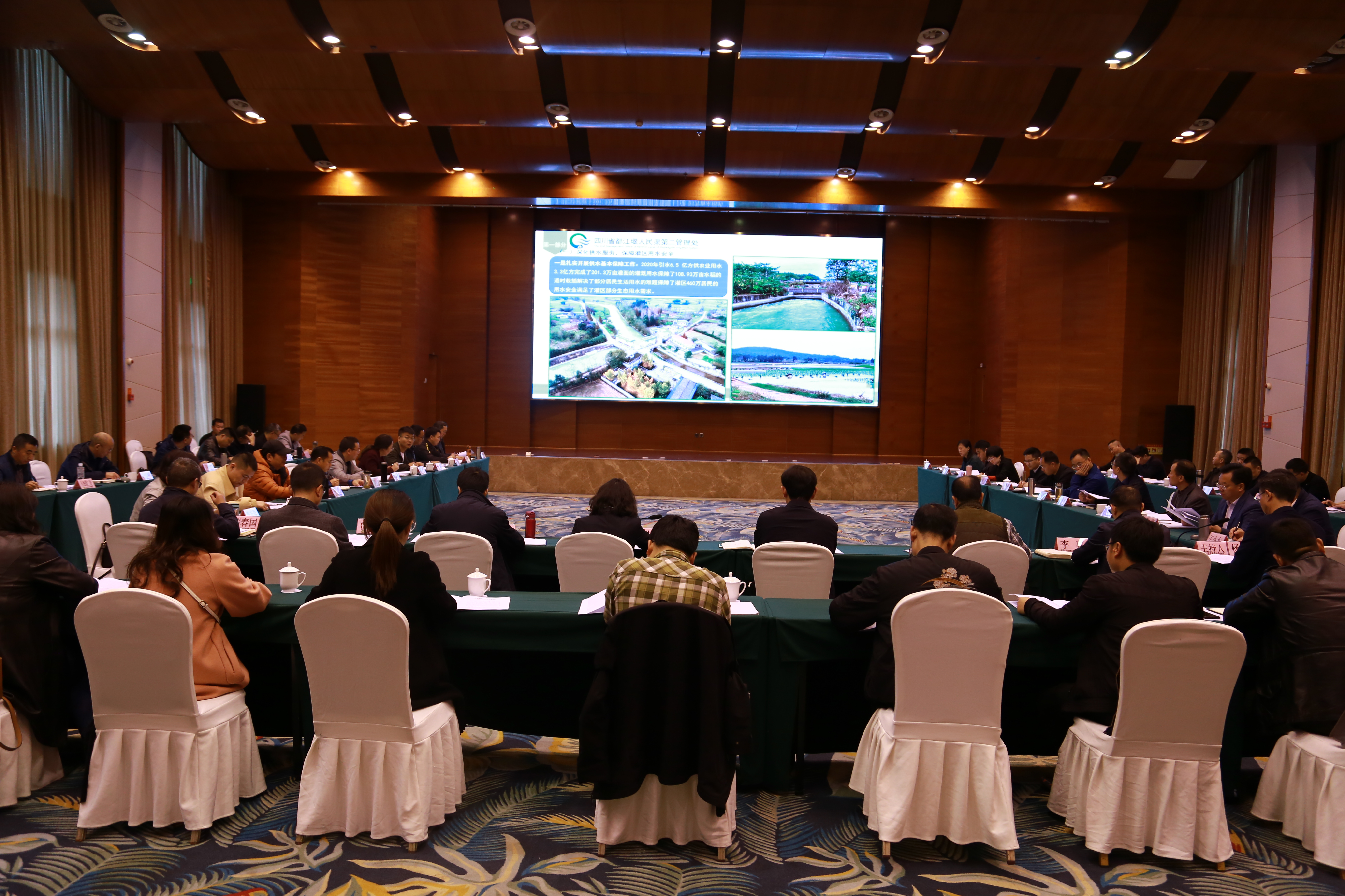 人民渠二处总工程师杨刚主持会议,农水局、都管局、人民渠一处,灌区各市水利局,各县级人民政府、县水利局参加会议。