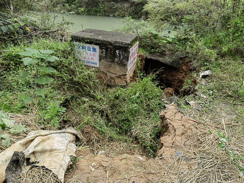10月12日9时50分,旌阳水利管理站天河闸养护段人员在对水利工程日常巡查中发现人民渠七期干渠26+900处86号分水洞周边沉降长度约6m,宽约3米,深约3米,旌阳站立即将此情况向处领导、规建运管科、处防办进行了报告。11时45分人民渠第二管理处规建运管科、供水科负责人及相关同志第一时间到达现场查看沉降情况。
