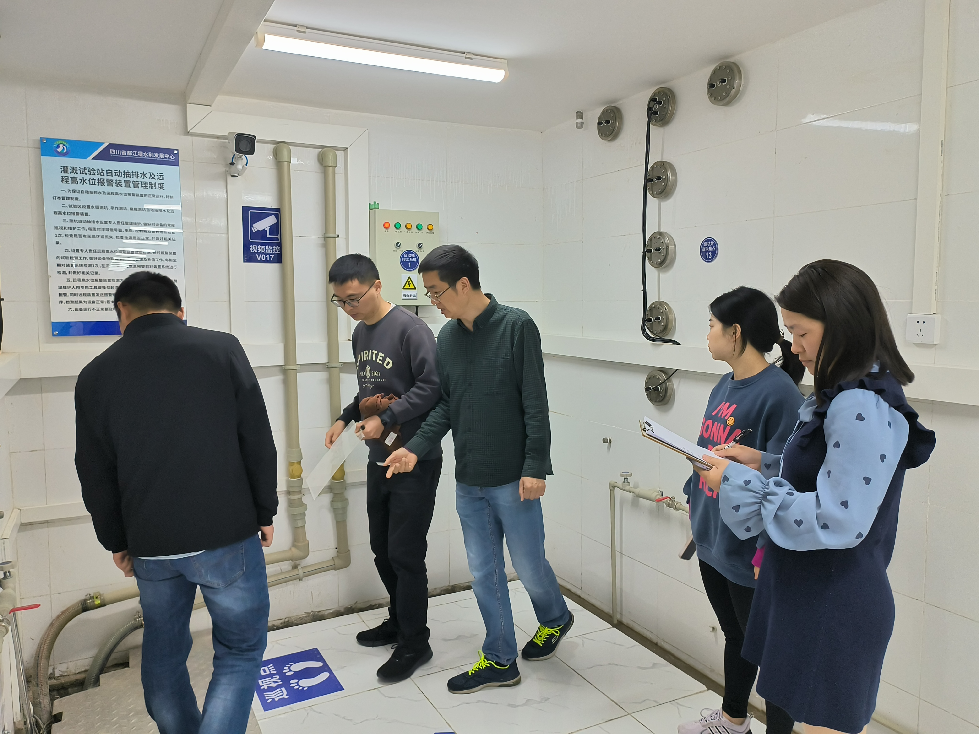 4月26日上午,灌溉试验站安全生产领导小组对试验区备用发电机房、防汛仓库、测坑、水环境试区和管理区实验室、机房、食堂、住宿楼、仓库等区域逐一进行消防安全检查和防汛安全检查。