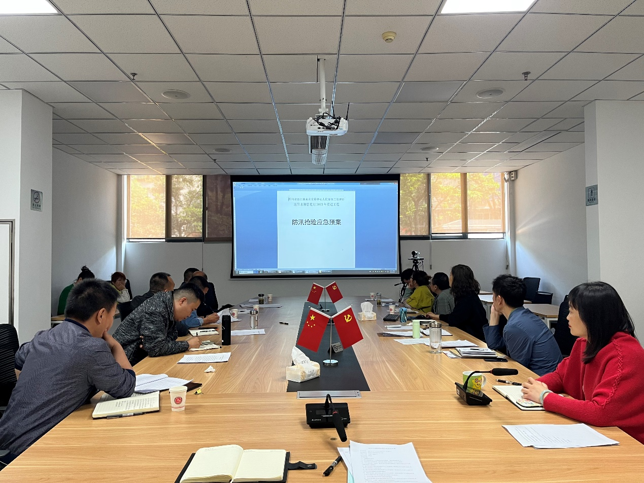 会议重点部署旌阳站2023年水旱灾害防御工作,结合人民渠五七期渠道工程运行情况,全体参会人员深入学习了管理处水旱灾害防御总体预案(渠道工程),针对突发险情分段落仔细讲解了应急处置流程,确保每位职工能正确处置突发险情。