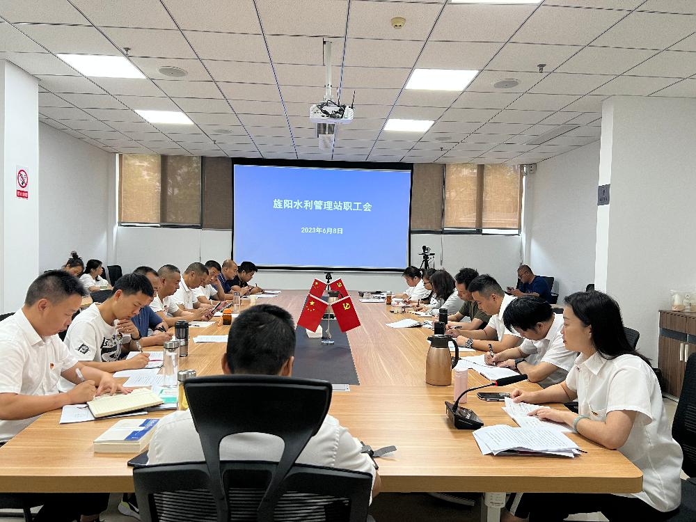 为有序推动全站各项工作顺利开展,及时传达人民渠第二管理处相关工作会议精神,6月8日,旌阳水利管理站召开职工会,安排部署近期工作。会议由站长陈喜主持。