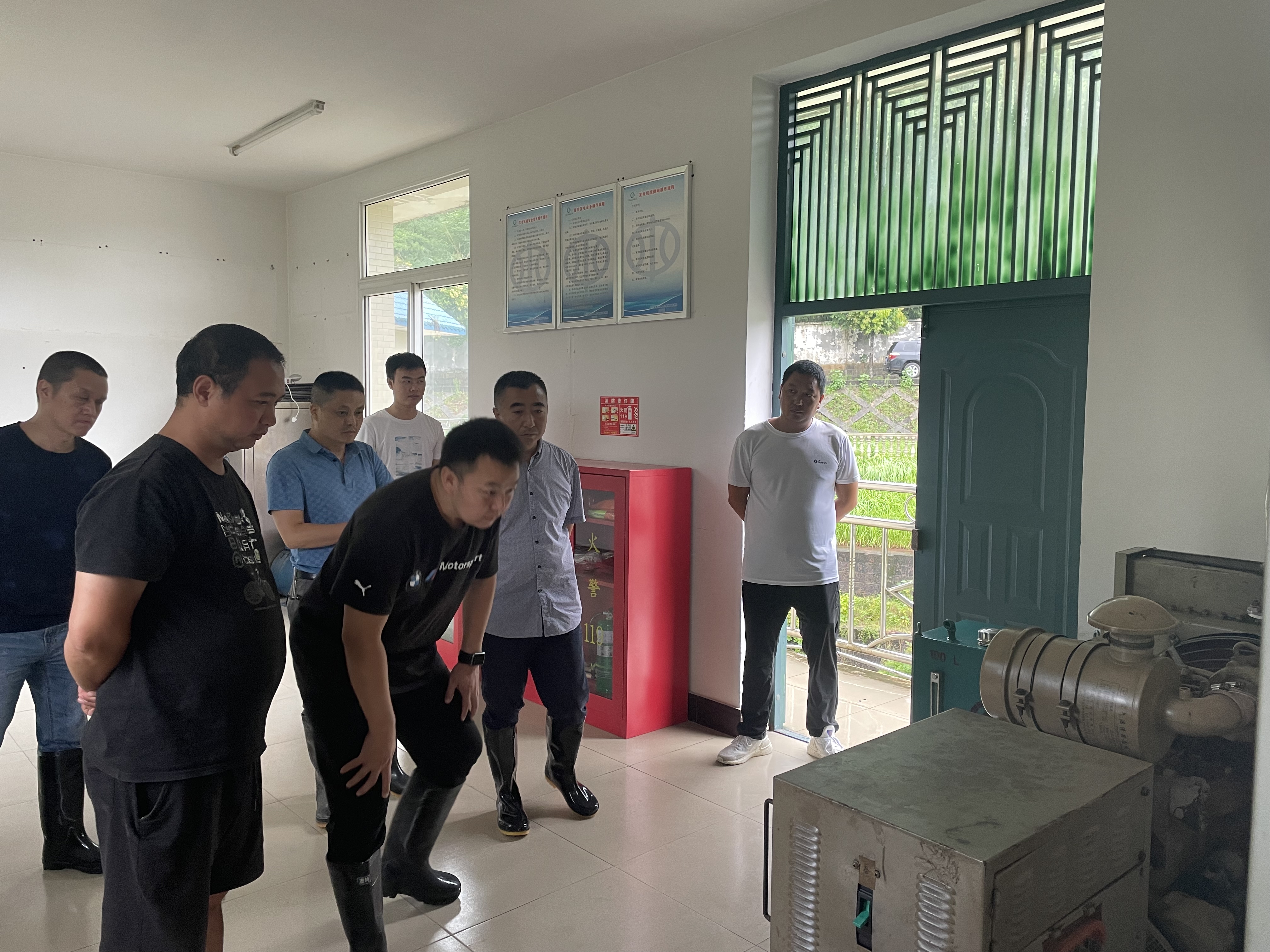 张涌一行先后对站、段两级值班值守、工作与学习记录、防汛物资、消防设备配备及管理情况进行了仔细检查,对渠道工程病险段落、重要枢纽、防汛道路等进行了全面检查,现场抽查检验了备用发电机运行情况。