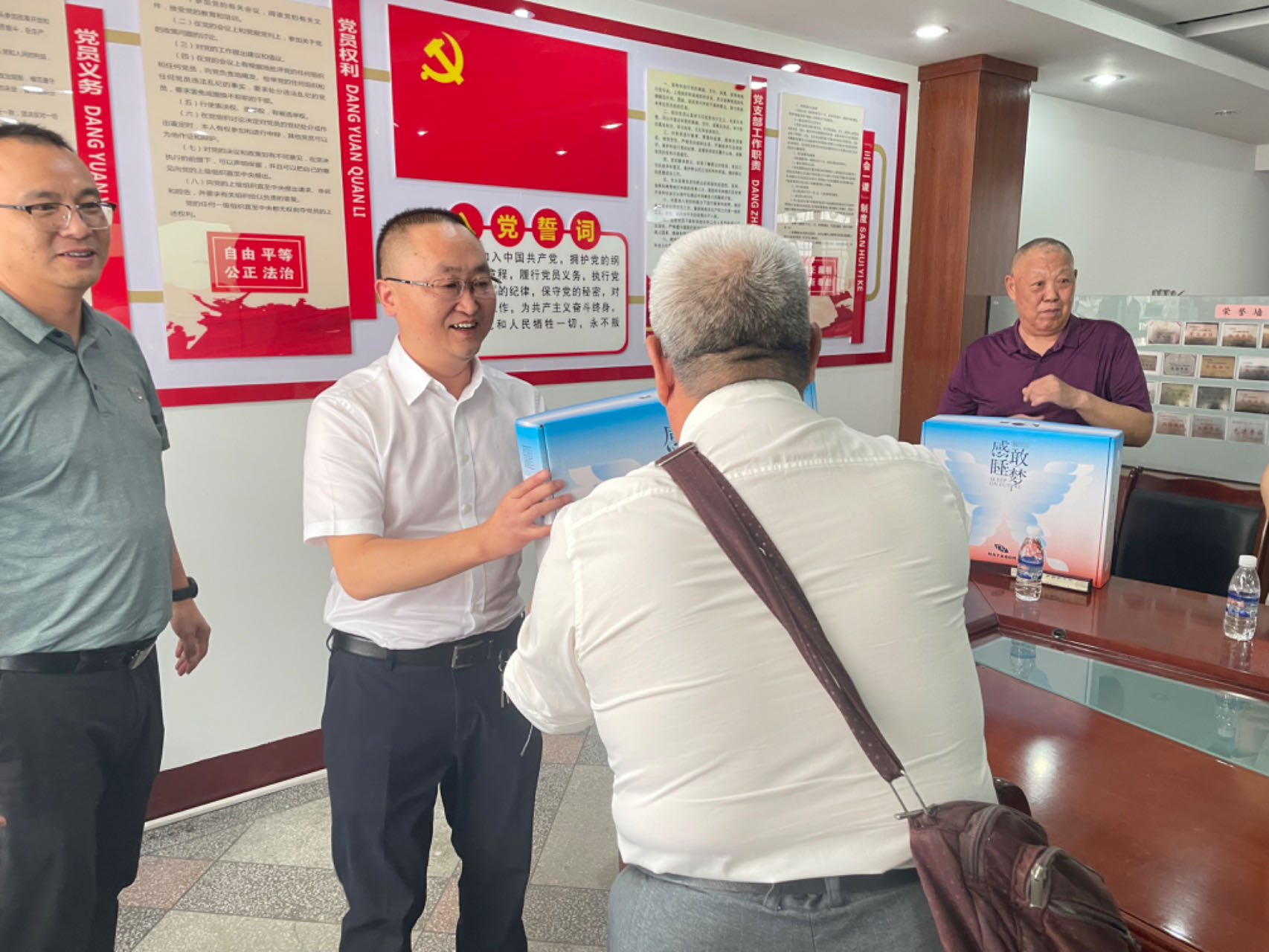 在慰问座谈会中,周李军副书记与退役军人们亲切交谈,认真聆听同志们追忆过去的峥嵘岁月,详细了解他们的身体状况和生活情况,并将慰问品送到同志们手中。同时向离退休老同志们简要介绍了单位目前的发展现状及未来蓝图,听取他们对单位发展的意见建议,对离退休军人多年来为单位的发展辛勤的付出和无私的奉献表示由衷感谢。