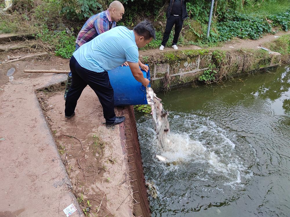 10月17日,在三台县农业农村局渔业渔政股工作人员的监督下,我站运用规定的渔业补救措施资金,向简杆堰车间所处的茂隆河段投放了规格为5至7厘米的指定种类鱼苗,顺利完成了2023年简杆堰车间水生生态影响补偿。(红旗鲁联中心电站 李金桂)