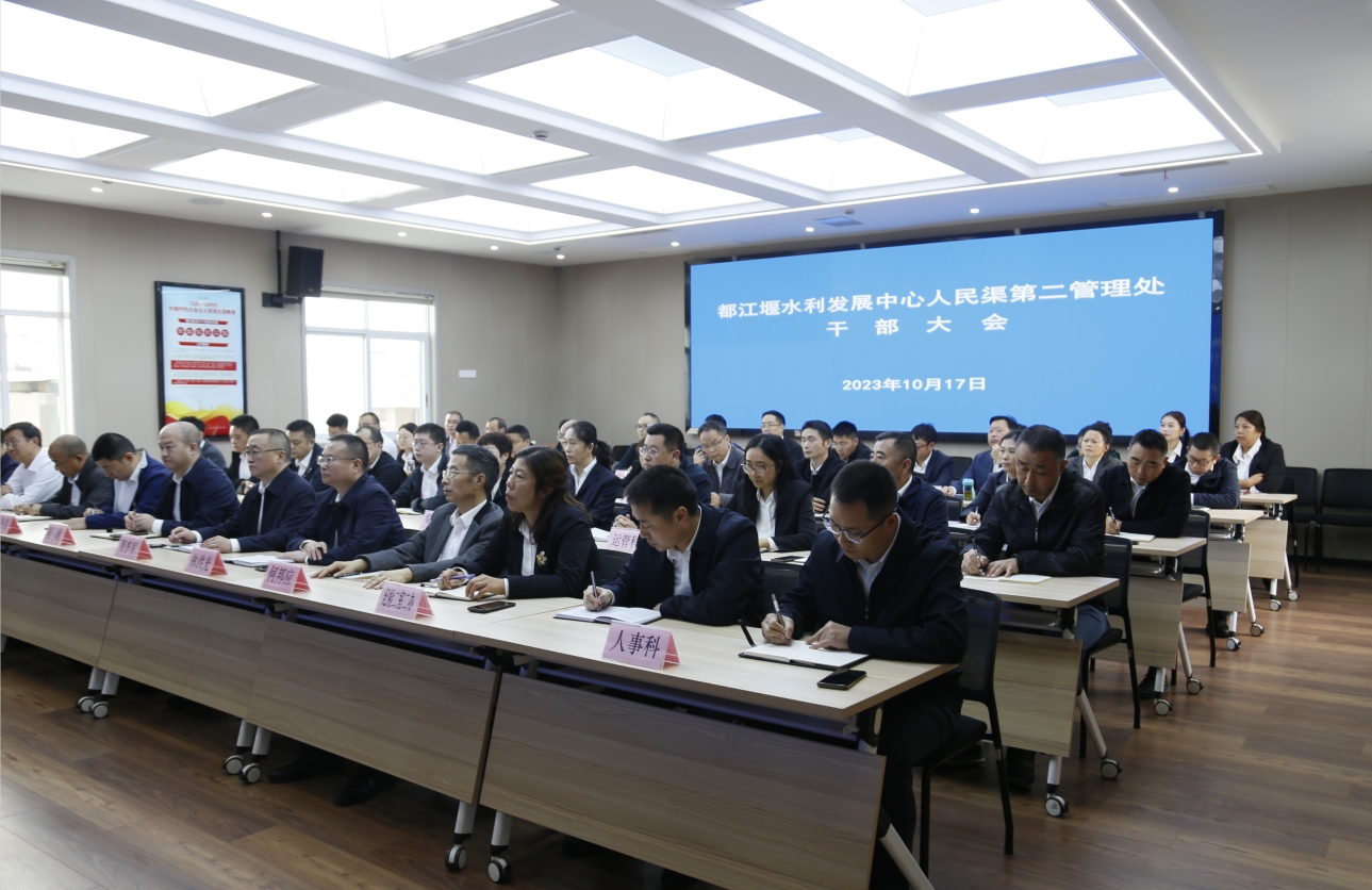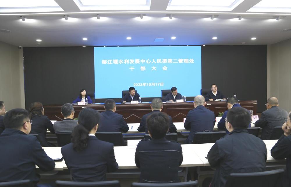 10月17日上午,都江堰水利发展中心人民渠第二管理处召开干部大会。厅人事处处长牟春出席会议并讲话、人民渠第二管理处在家处领导、中层干部、机关部分职工代表参加会议,会议由都江堰水利发展中心党委书记、主任朱泽华主持。