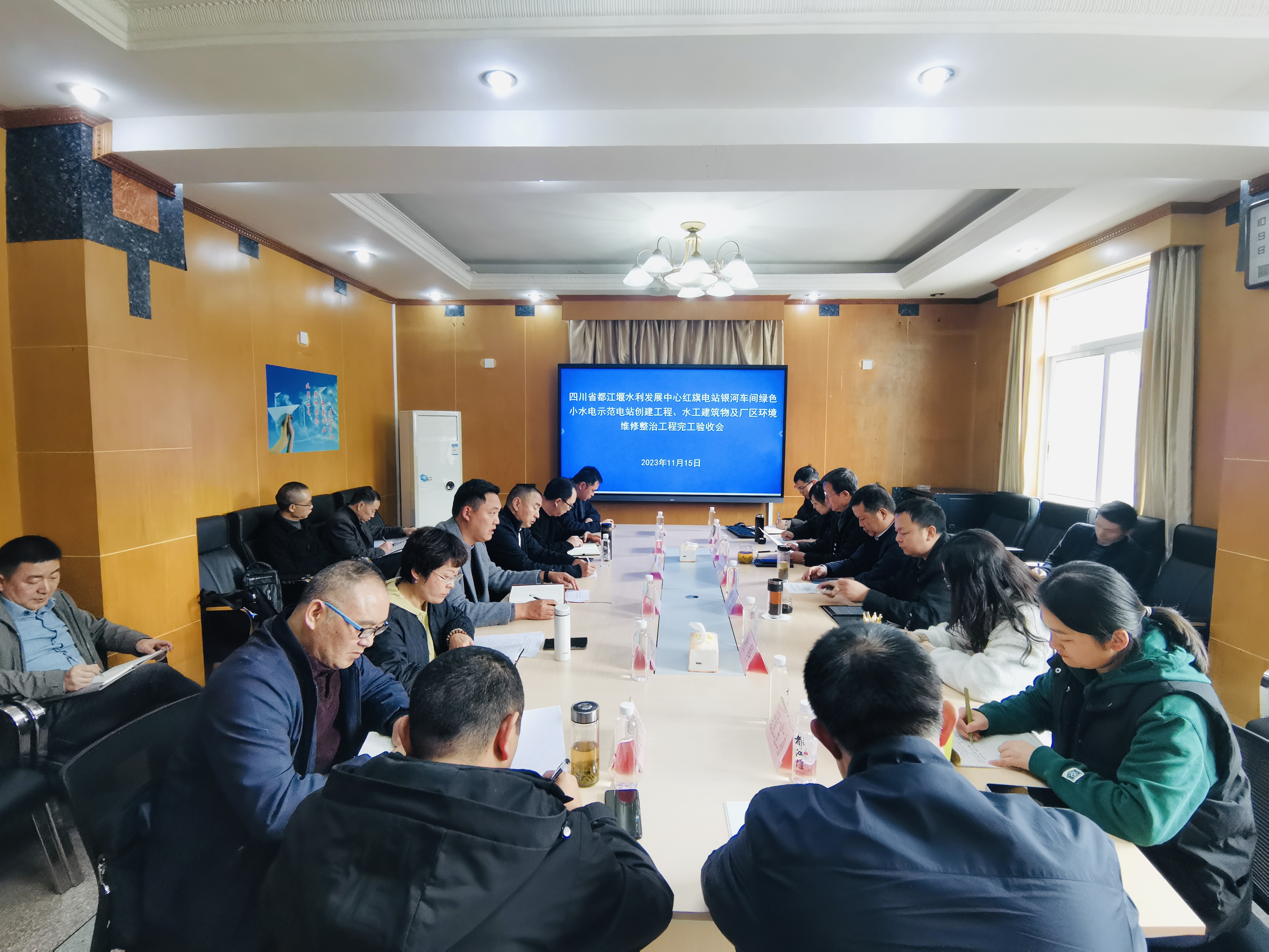 根据《水利水电建设工程验收规程》(SL223-2008)相关规定,2023年11月15日,四川省都江堰水利发展中心人民渠第二管理处组织开展红旗电站银河车间绿色小水电示范电站创建工程、水工建筑物及厂区环境维修整治工程(以下简称“该工程”)完工验收工作,都发中心综经处副处长安静,人民渠第二管理处副处长张涌、处级领导杨刚参加验收。