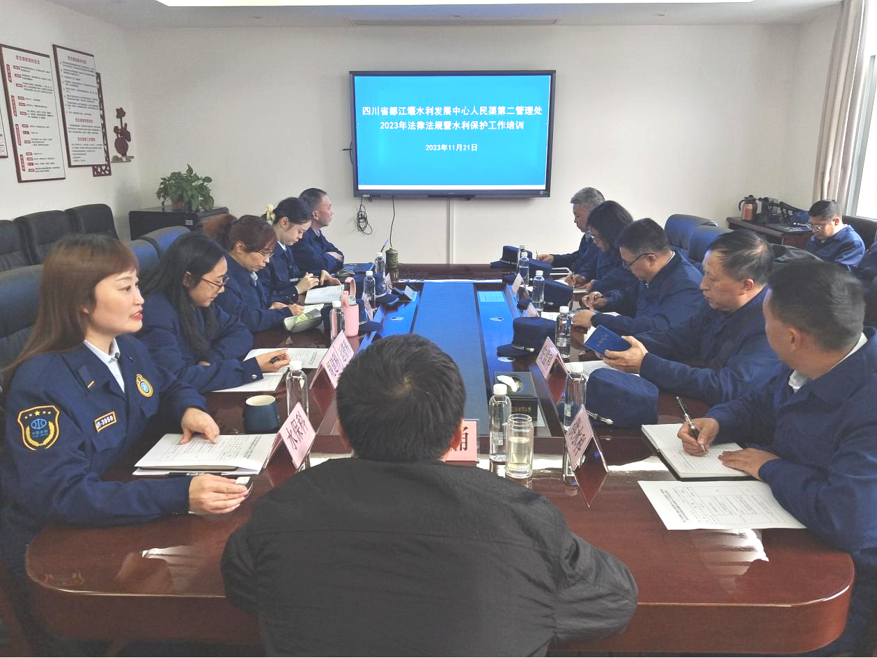 为推进人民渠第二管理处水利法治建设,不断提升水利保护工作水平,更好地服务灌区水利高质量发展,2023年11月21日,人民渠第二管理处组织开展2023年法律法规暨水利保护工作培训,副处长张涌作培训动员讲话,全处水利保护工作人员参训。